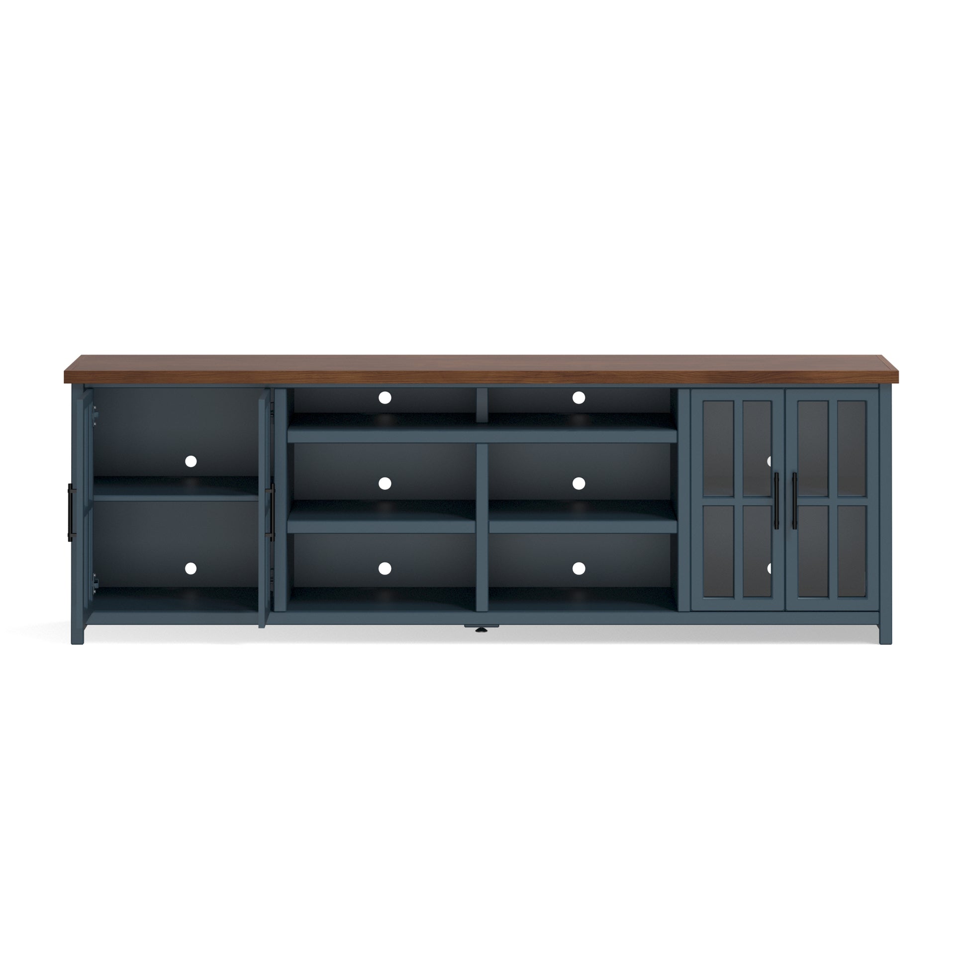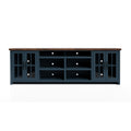 Nantucket 96 Inch Tv Stand Console For Tvs Up To 100 Inches, No Assembly Requried, Blue Denim And Whiskey Finish Blue Primary Living Space 90 Inches Or Larger 90 Inches Or Larger Coastal,Farmhouse Poplar 85 Inches Wood