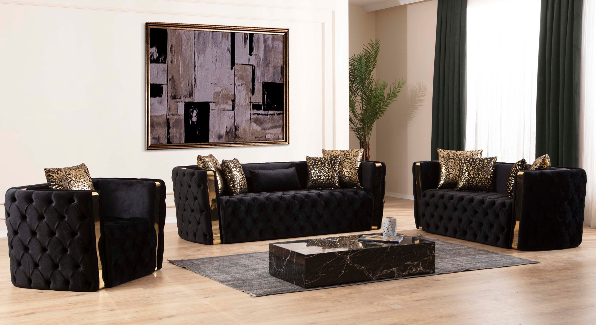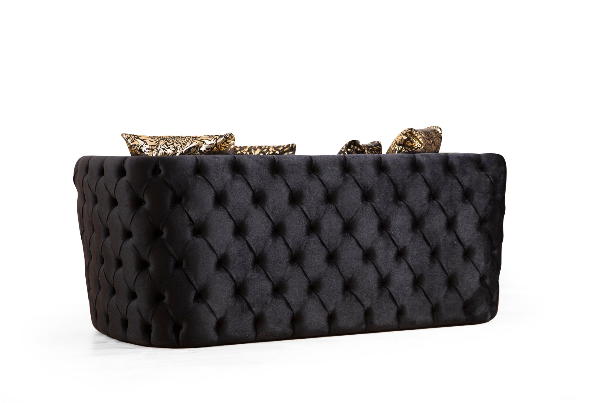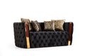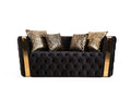 Naomi Button Tufted Loveseat With Velvet Fabric And Gold Accent In Black Black Velvet Wood Bedroom Firm Tight Back Contemporary,Modern Solid Wood Mdf Velvet
