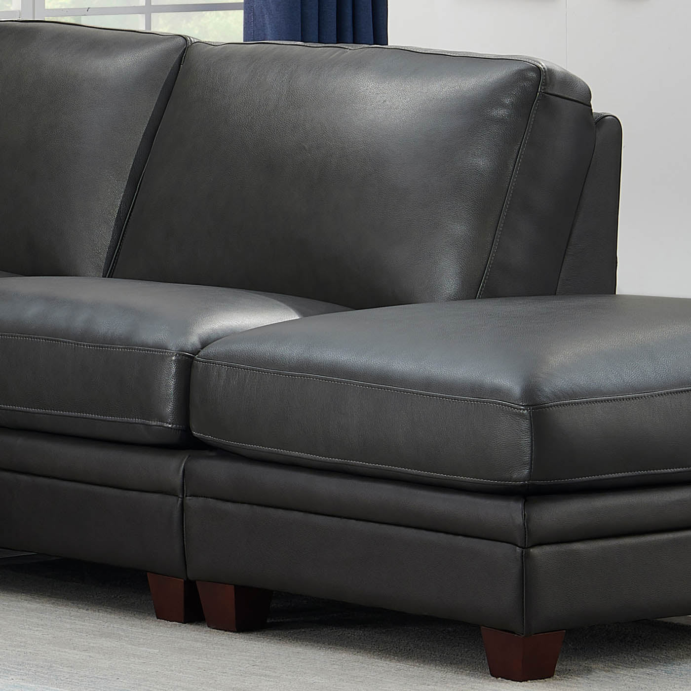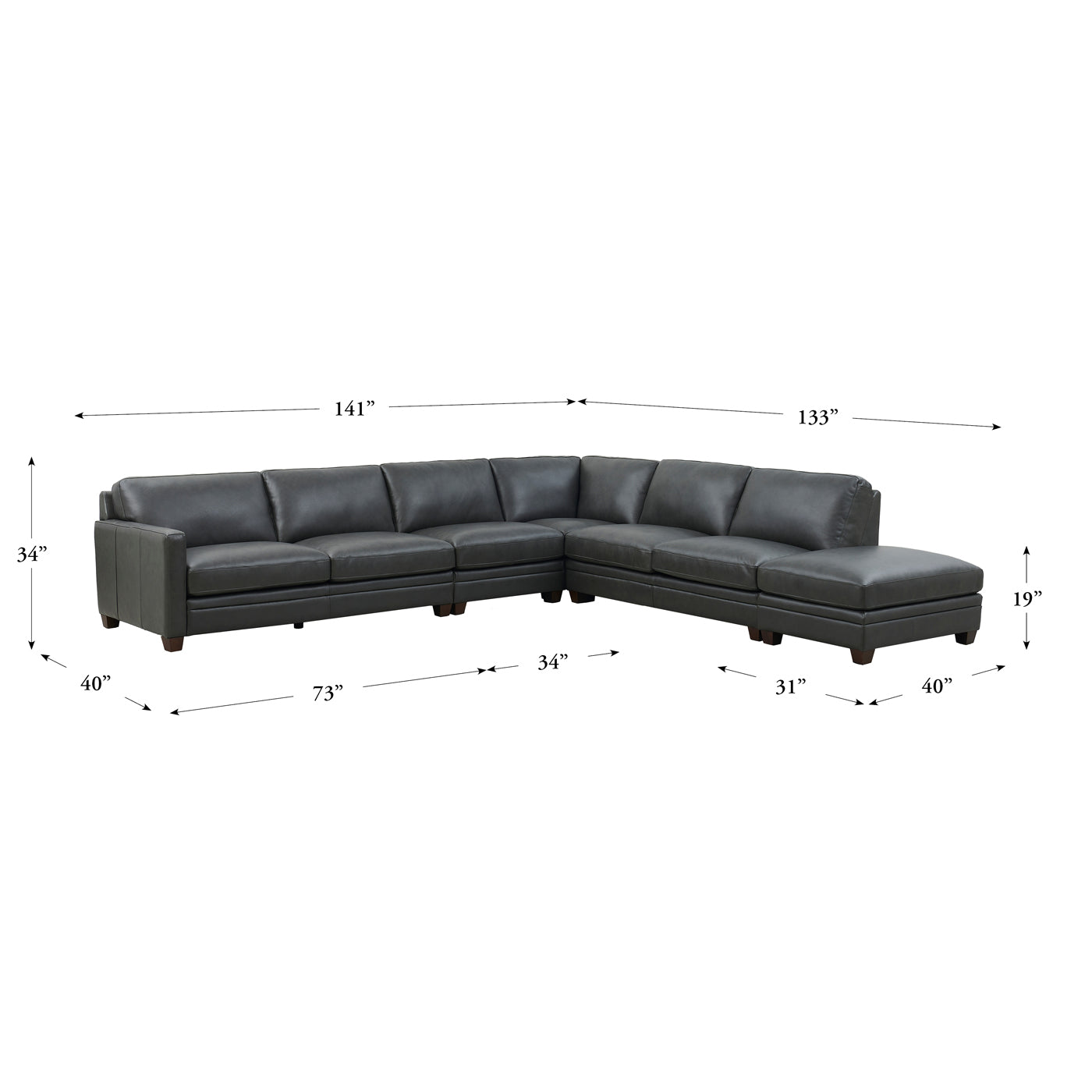 Naples Top Grain Leather L Shape 5 Piece Sectional Right End Ottoman Gray Genuine Leather Wood Primary Living Space Medium Firm Cushion Back Mid Century Modern L Shaped Eucalyptus Square Arms Memory Foam Leather 7 Seat