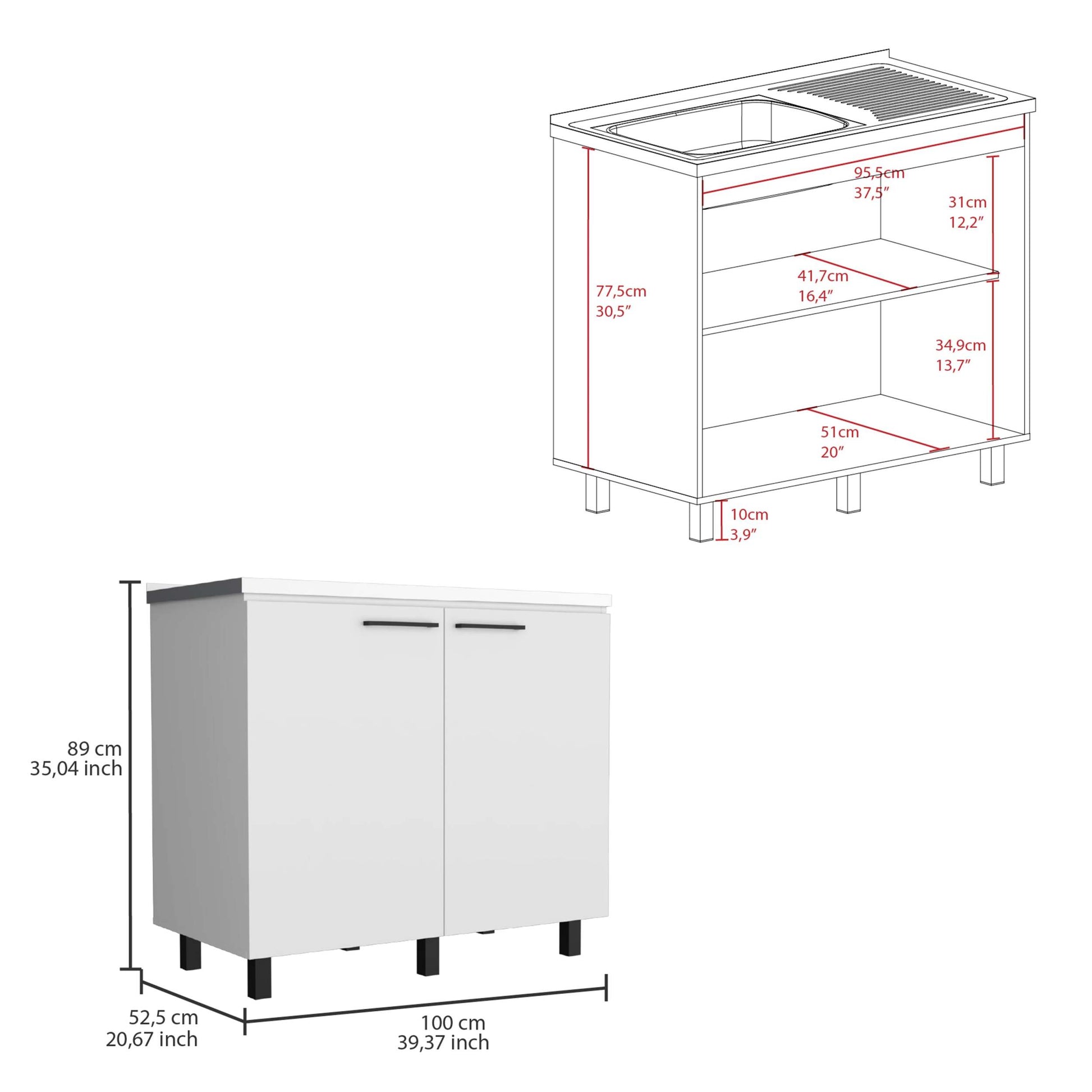 Napoles 2 Utility Sink With Cabinet, Stainless Steel Countertop, Interior Shelf White White Particle Board Particle Board