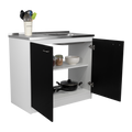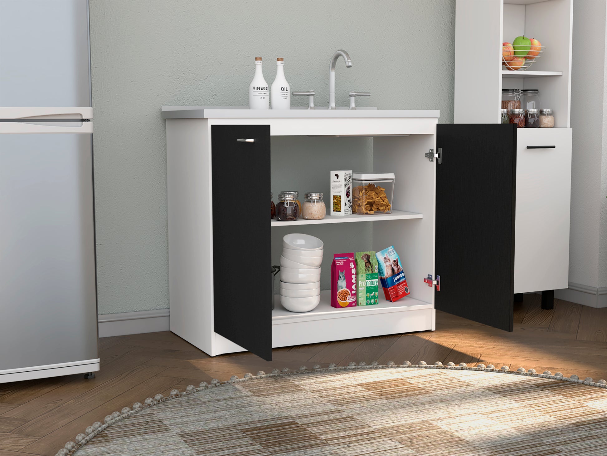 Napoles Utility Sink With Cabinet, Double Door, One Shelf White Black Freestanding 1 2 Spaces Brown Kitchen Shelves Included Modern Particle Board Particle Board