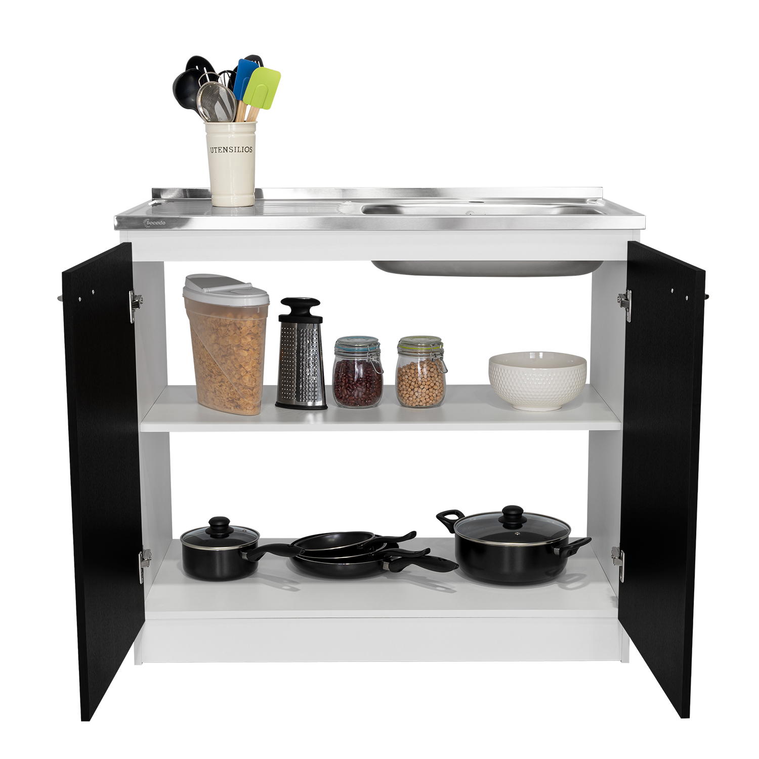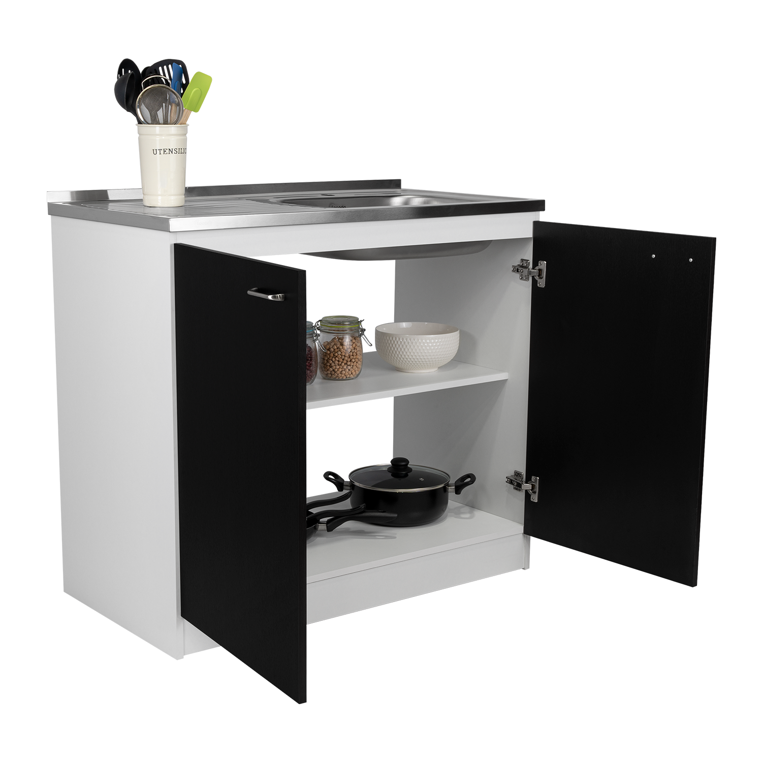 Napoles Utility Sink With Cabinet, Double Door, One Shelf White Black Multi Kitchen Modern Particle Board Particle Board