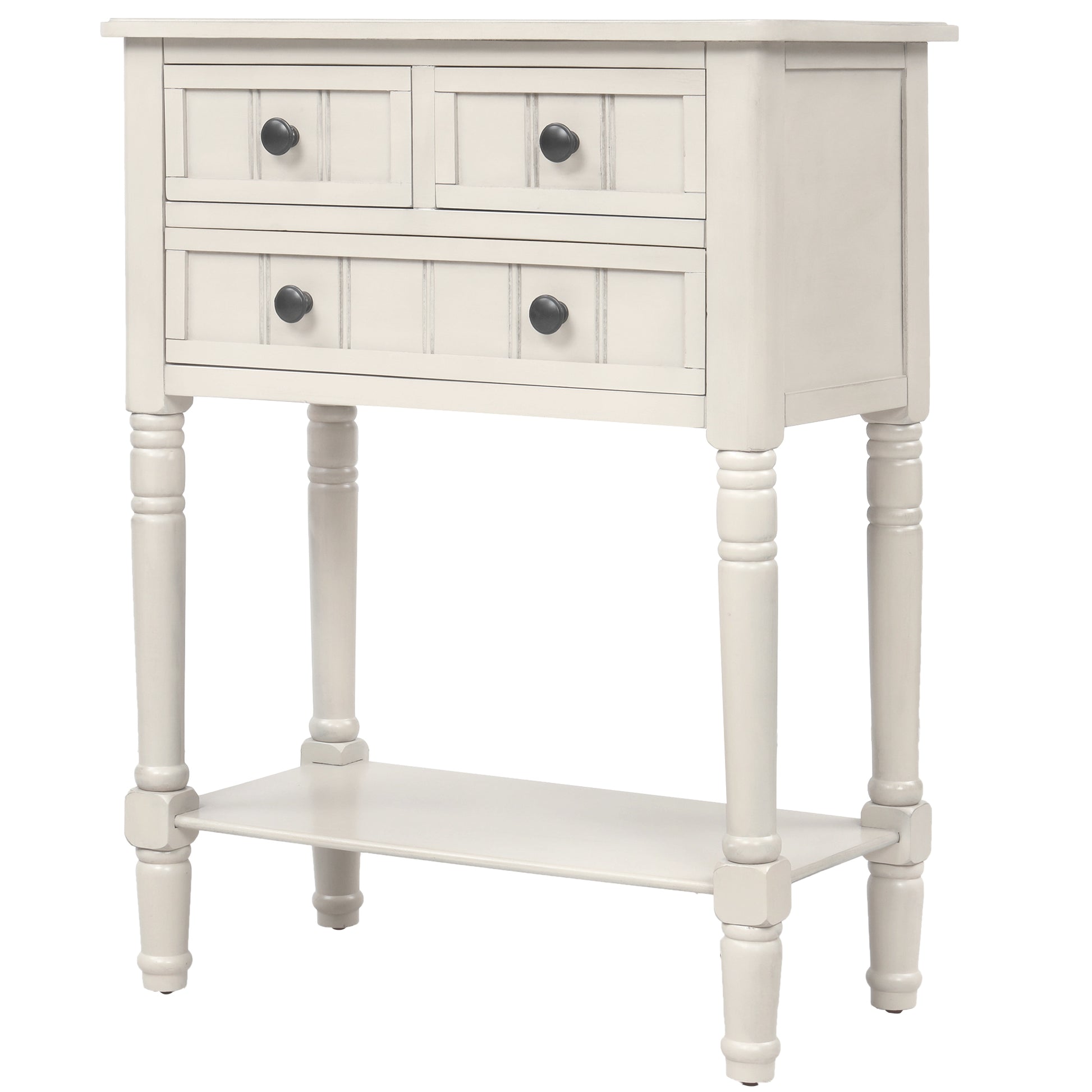 Narrow Console Table, Slim Sofa Table With Three Storage Drawers And Bottom Shelf Ivory White Ivory White Solid Wood