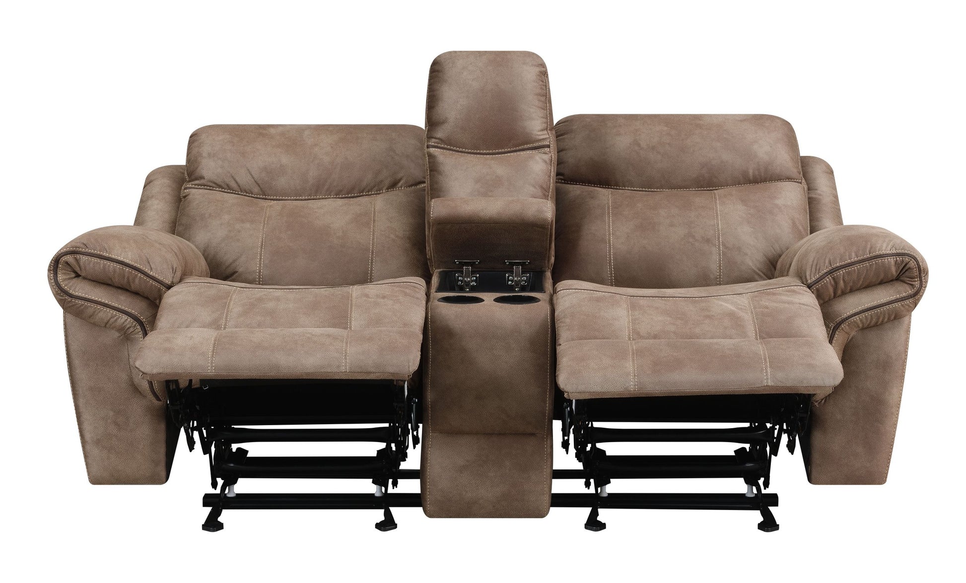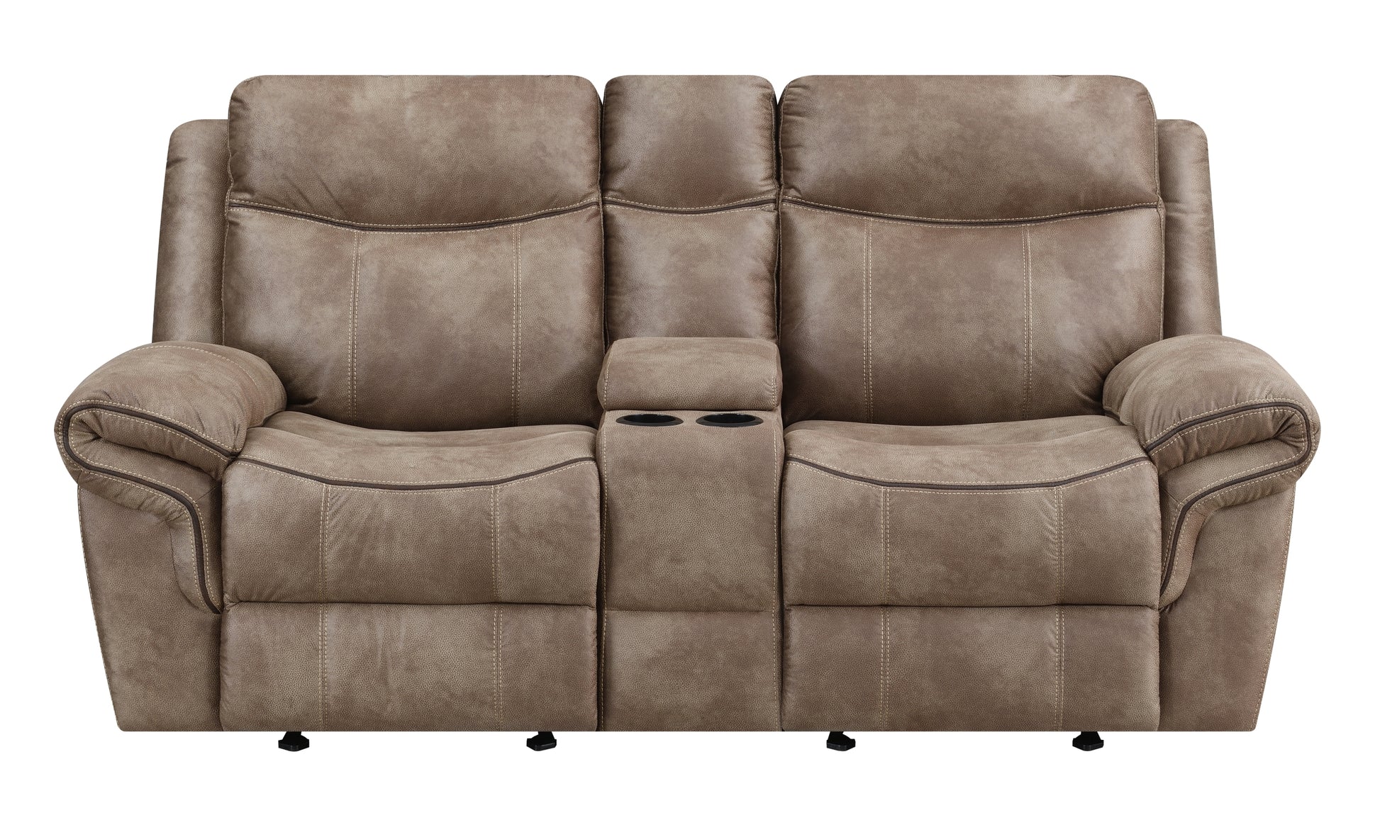 Nashville Glider Recliner Console Loveseat Light Brown Light Brown Faux Leather 2 Seat