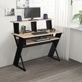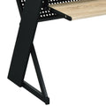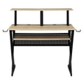 Natural And Black Music Desk With Cord Managements Natural Black Computer Desk Office Rectangular Shelves Desk Wood Metal Sled