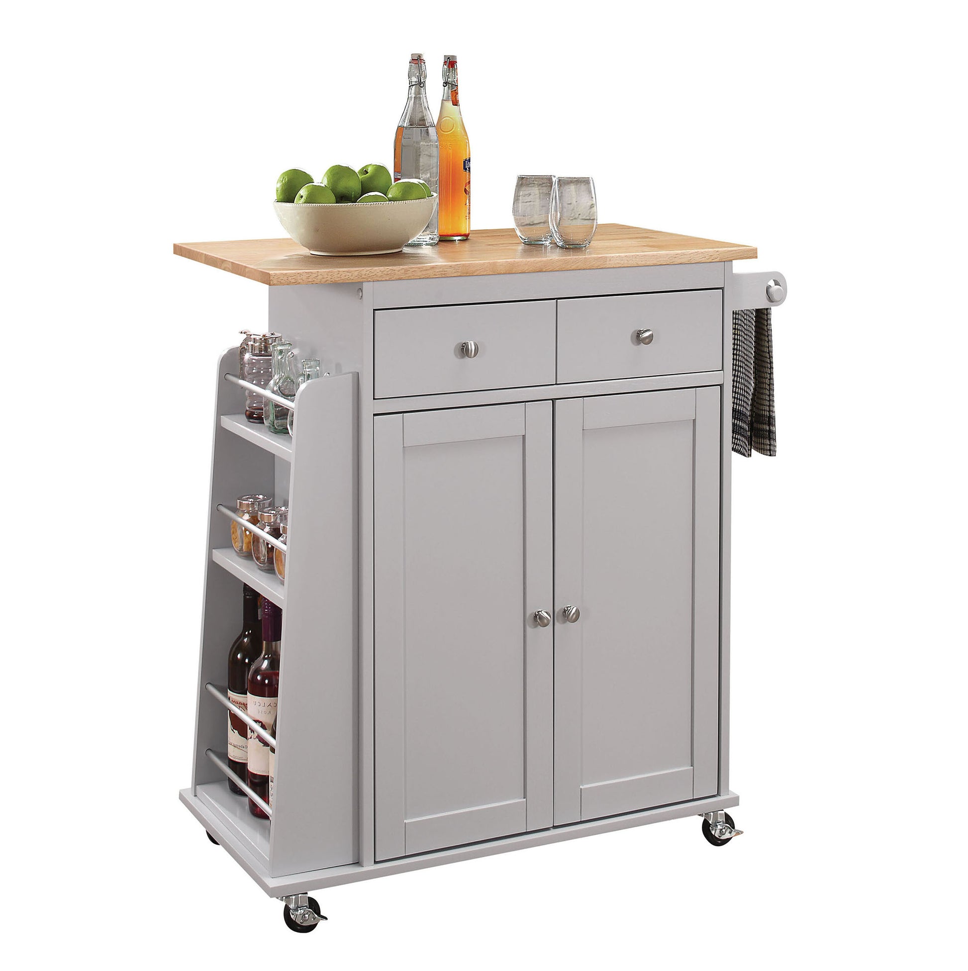 Natural And Grey 2 Drawer Kitchen Cart Natural Grey Dining Room Rectangular Kitchen Carts Rubberwood Wood Small Less Than 40In