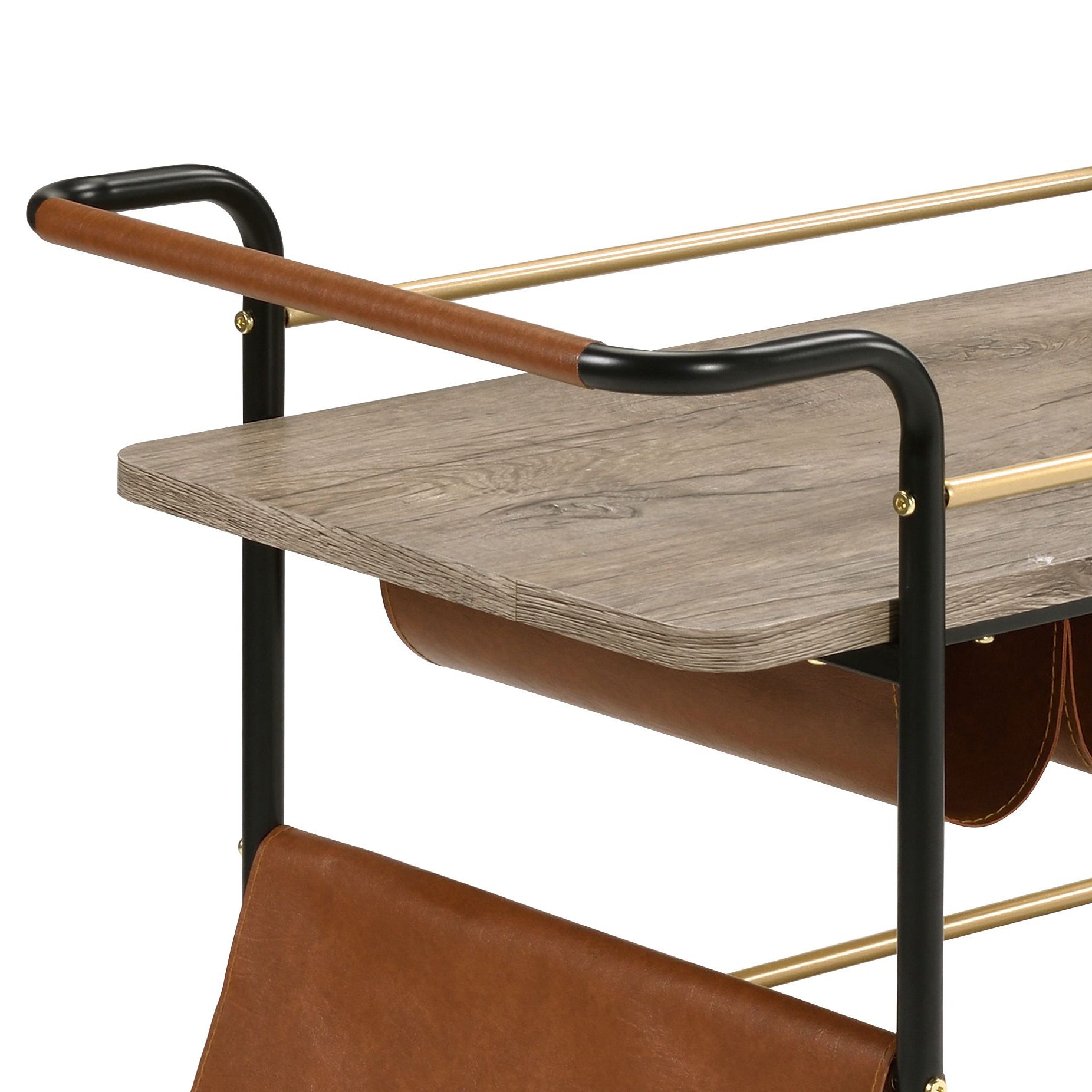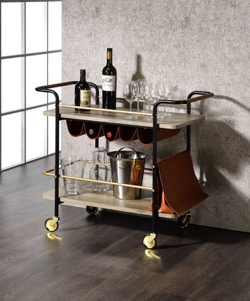 Natural, Gold And Black Serving Cart With Wine Storage Natural Black Dining Room Kitchen Carts Wood Metal