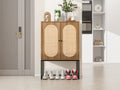 Natural Rattan, Allen 2 Door High Cabinet, Rattan, Built In Adjustable Shelf, Easy Assembly, Free Standing Cabinet For Living Room Bedroom Walnut Mdf