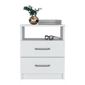 Nightstand 20"H, Two Drawers, Open Shelf, Superior Top, White White Particle Board Particle Board