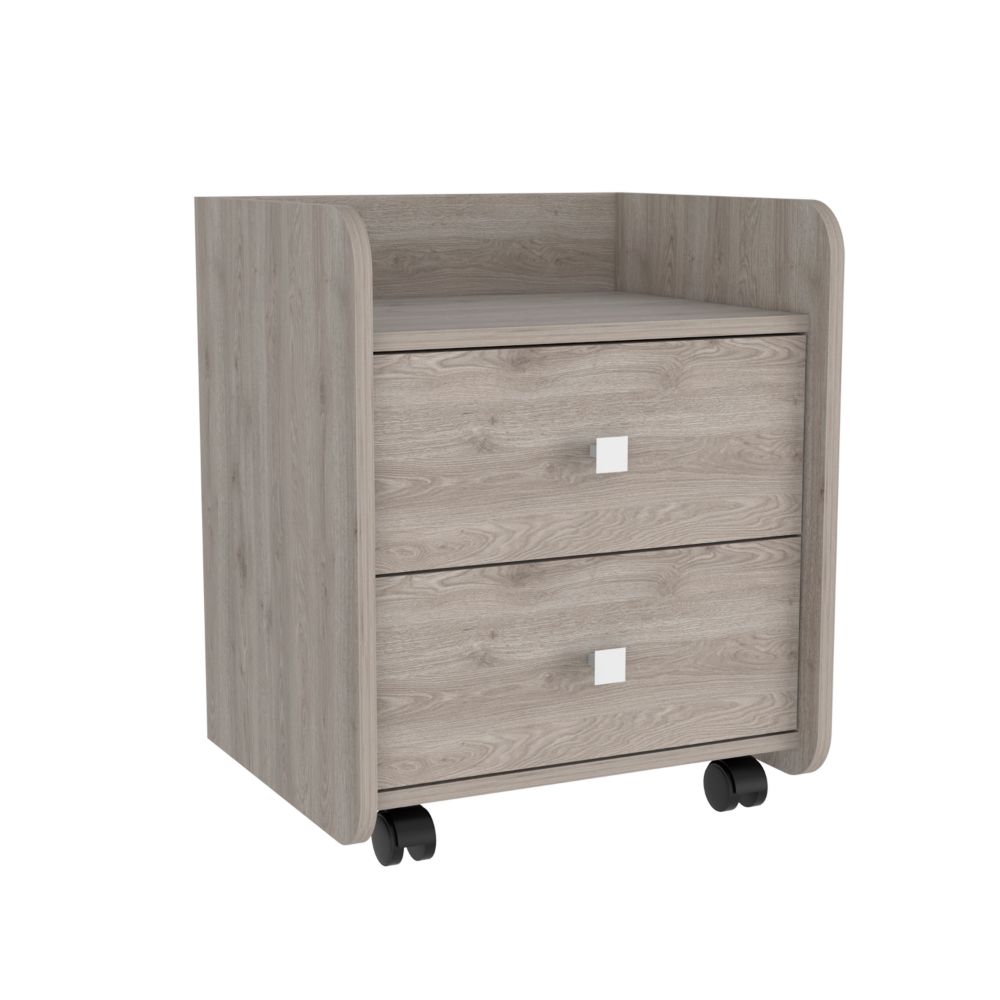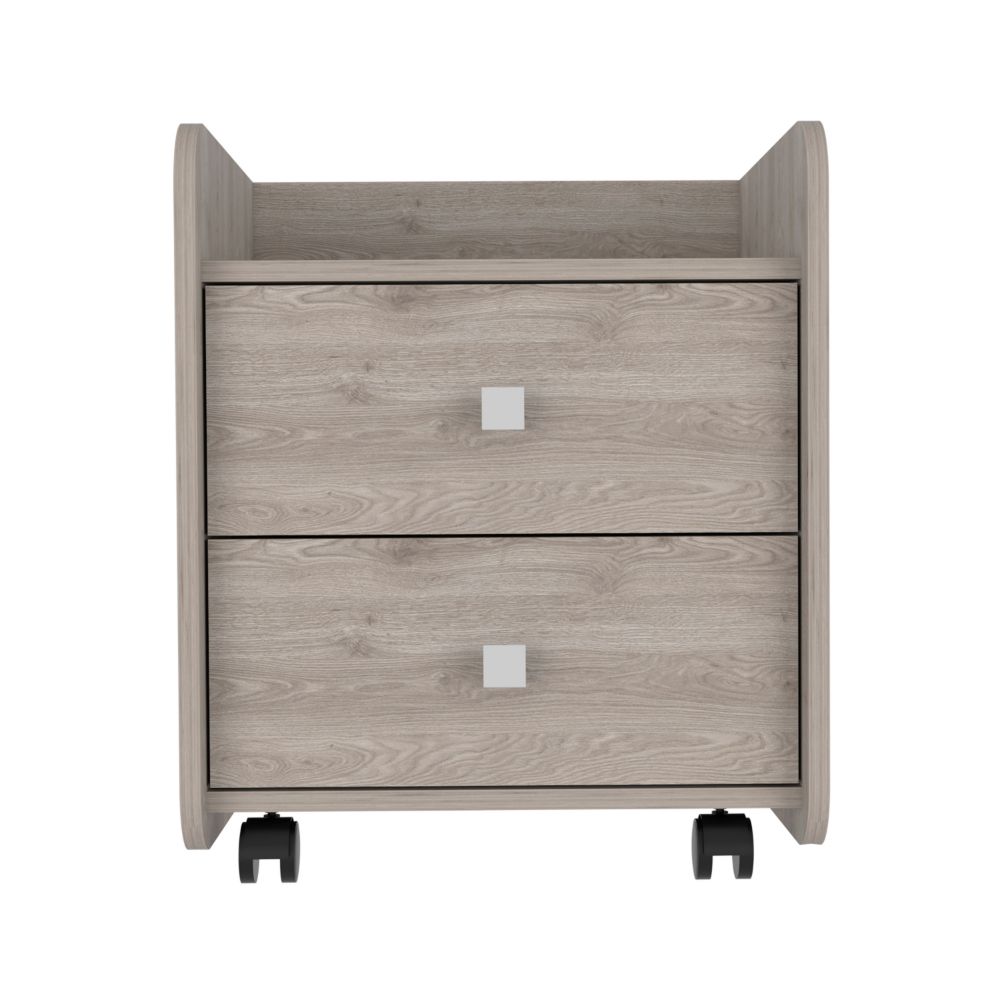 Name: Nightstand 22"h, Two Drawers, Superior Top, Metal Handle, four wheels, Light Gray