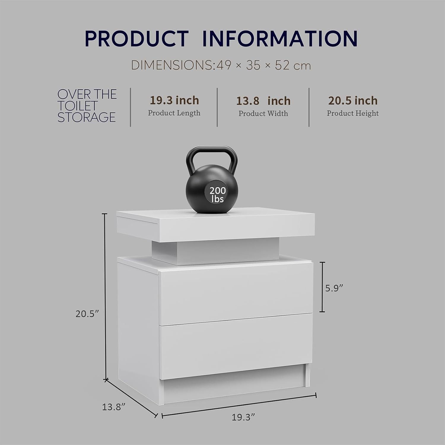 Nightstand Led Bedside Table Cabinet Lights Modern End Side With 2 Drawers For Bedroom Deep Gray Gray 2 Drawers Bedroom Bedside Cabinet American Design,American Traditional,Boho,Classic Drawers Engineered Wood