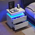 Nightstand Led Bedside Table Cabinet Lights Modern End Side With 2 Drawers For Bedroom White Stone Matte White 2 Drawers Bedroom Bedside Cabinet American Design,American Traditional,Boho,Classic,Traditional Drawers Engineered Wood