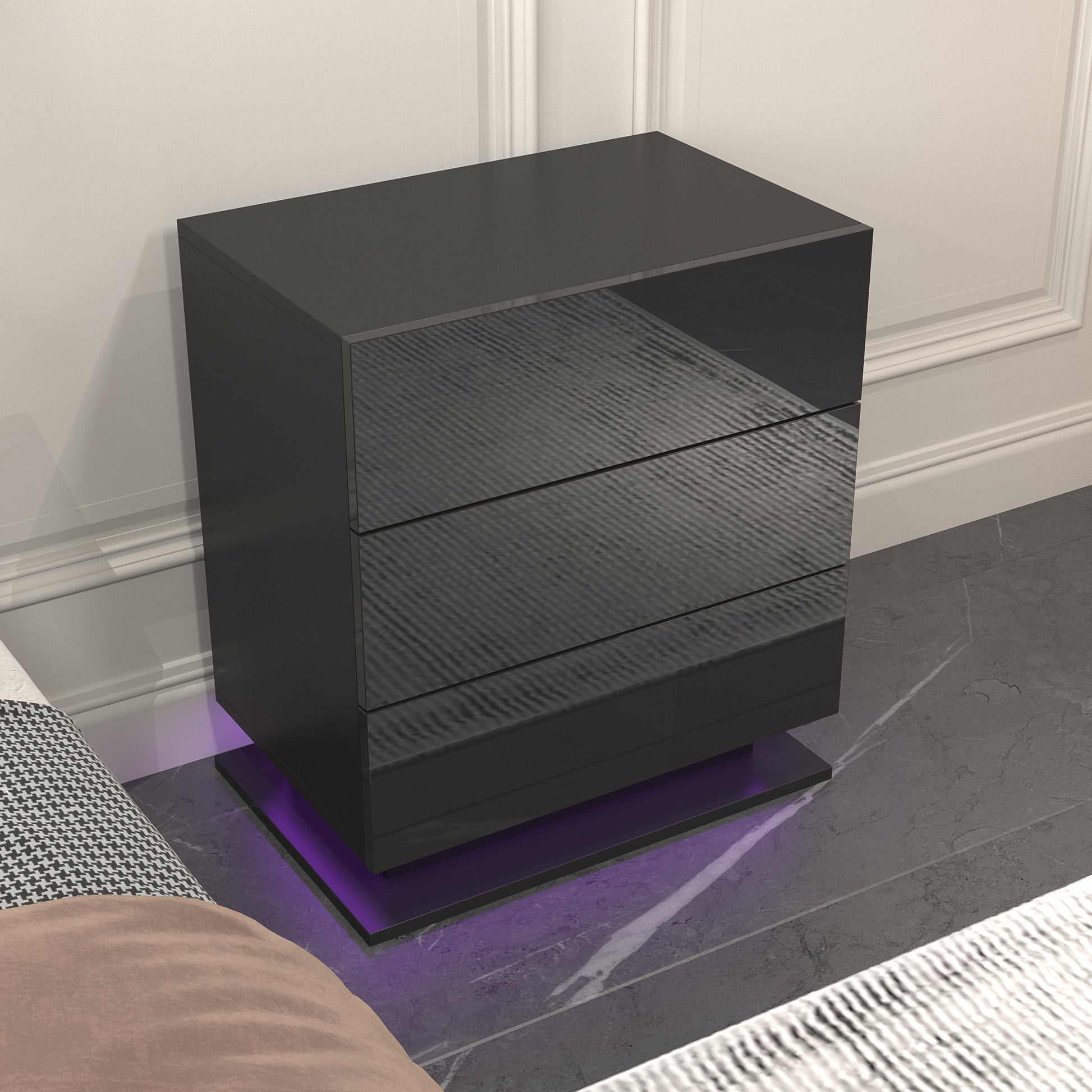Nightstand With 3 Storage Drawers,Led Lights, End Table For Bedroom Furniture Black Particle Board