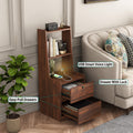 Nightstand With Charging Station, Smart Nightstand With Night Light, Modern Night Stand With Bookshelf, Bedside Tables With Storage Cabinet For Bedroom, Wood Wood Mdf