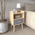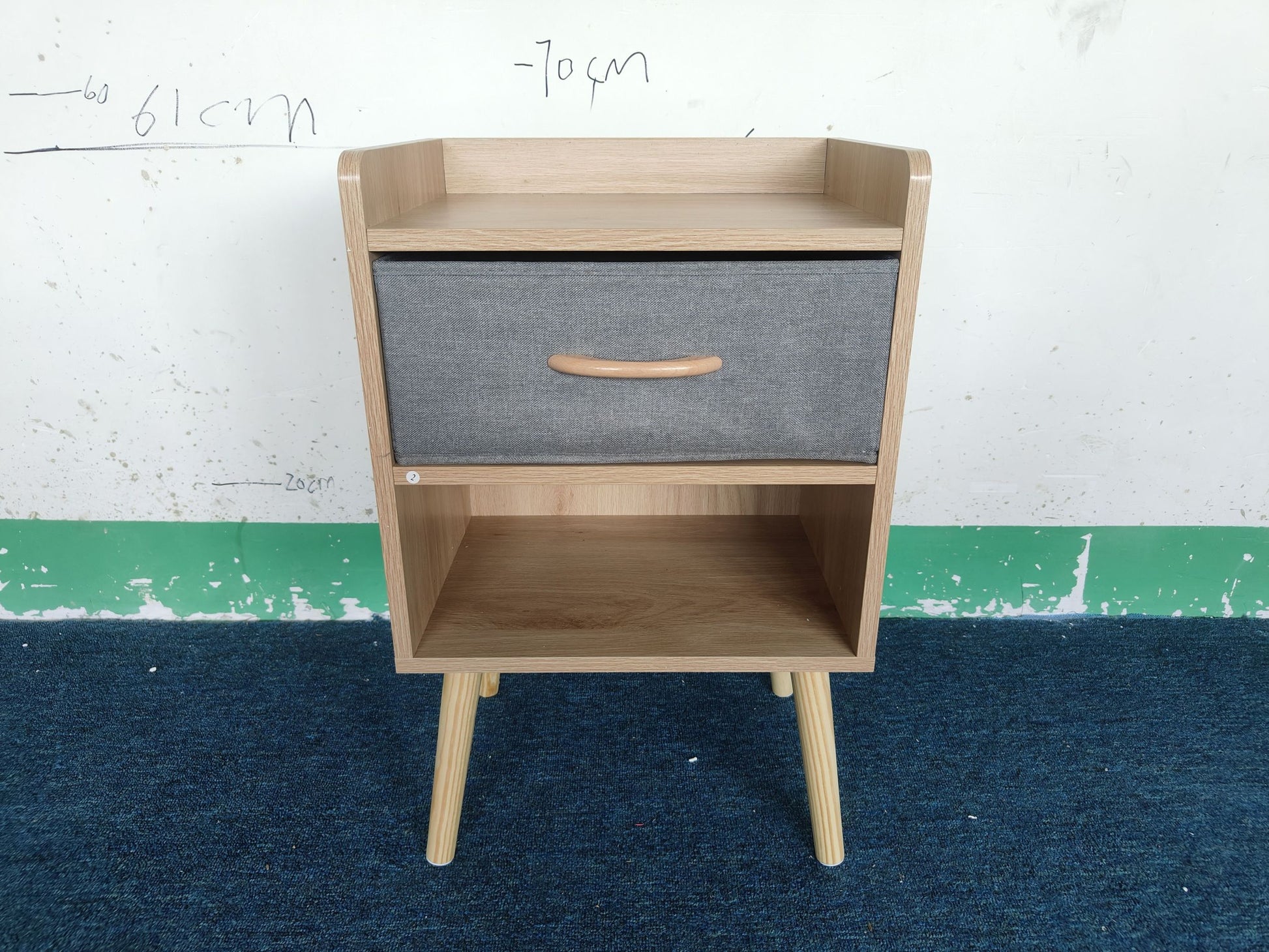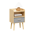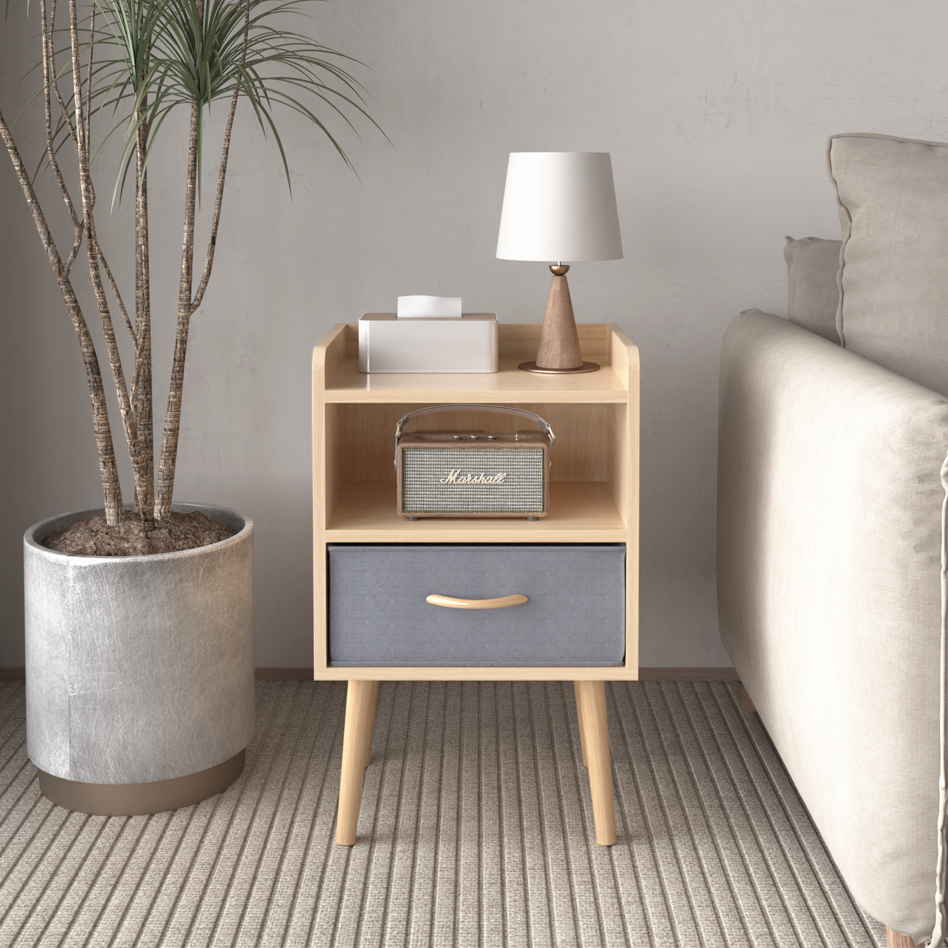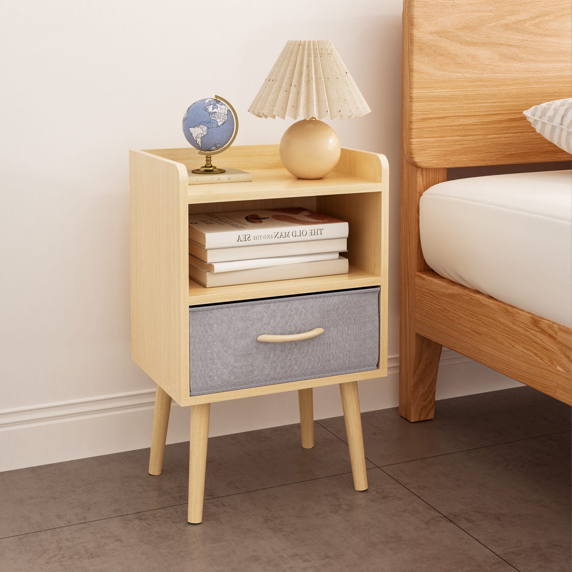 Nightstand With Collapsible Fabric Drawer, 2 Tier Storage End Table, Wood Side Table With Storage Cabinet For Bedroom, Living Room Oak Oak Engineered Wood