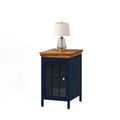 Nightstand With Storage Cabinet & Solid Wood Tabletop, Bedside Table, Sofa Side Coffee Table For Bedroom, Living Room, Dark Blue Blue Iron