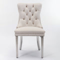 Nikki Collection Modern, High End Tufted Solid Wood Contemporary Velvet Upholstered Dining Chair With Chrome Stainless Steel Plating Legs,Nailhead Trim,Set Of 2 Beige And Chrome, Sw1701Bg Beige Foam Velvet