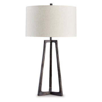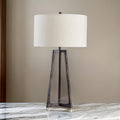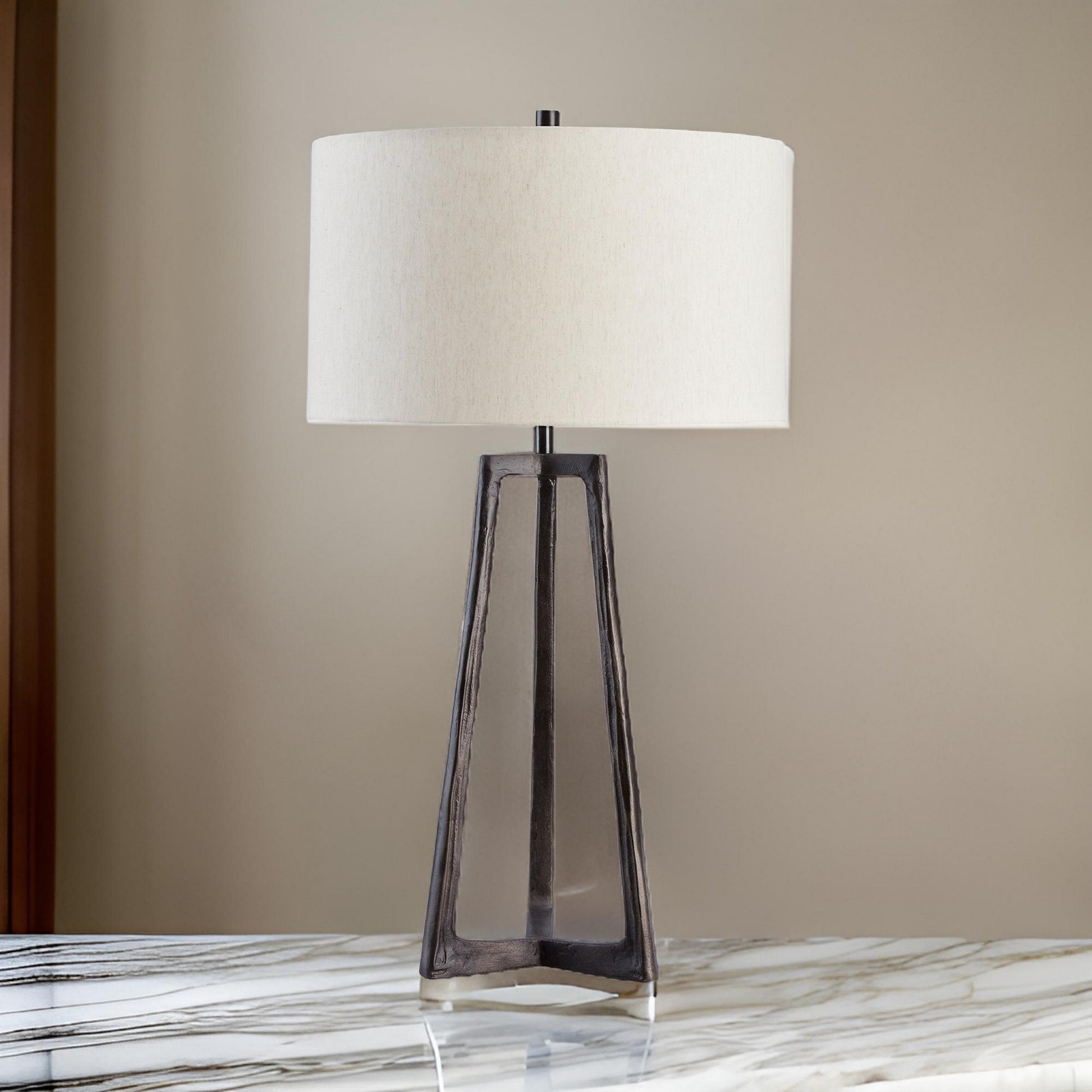 Nila 35 Inch Table Lamp, Antique Black Metal, 3 Way Switch, Drum Shade Black Fabric Metal