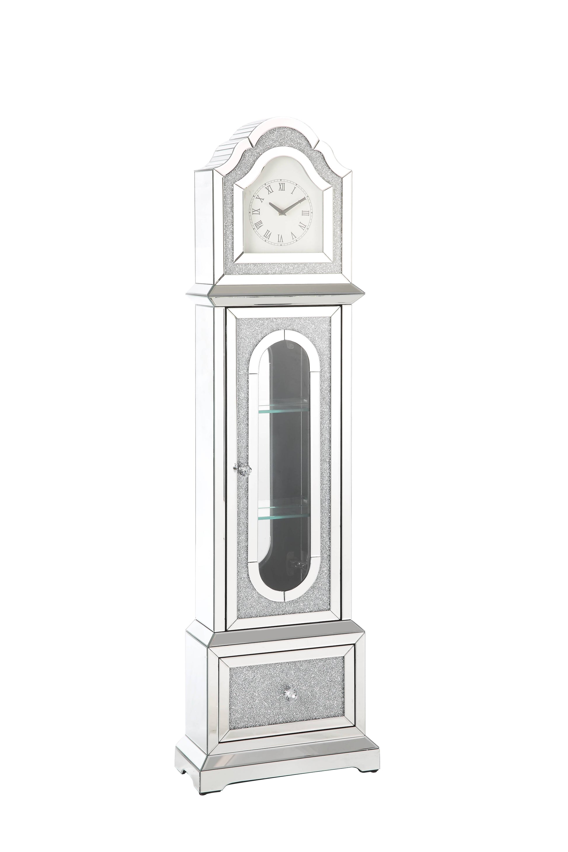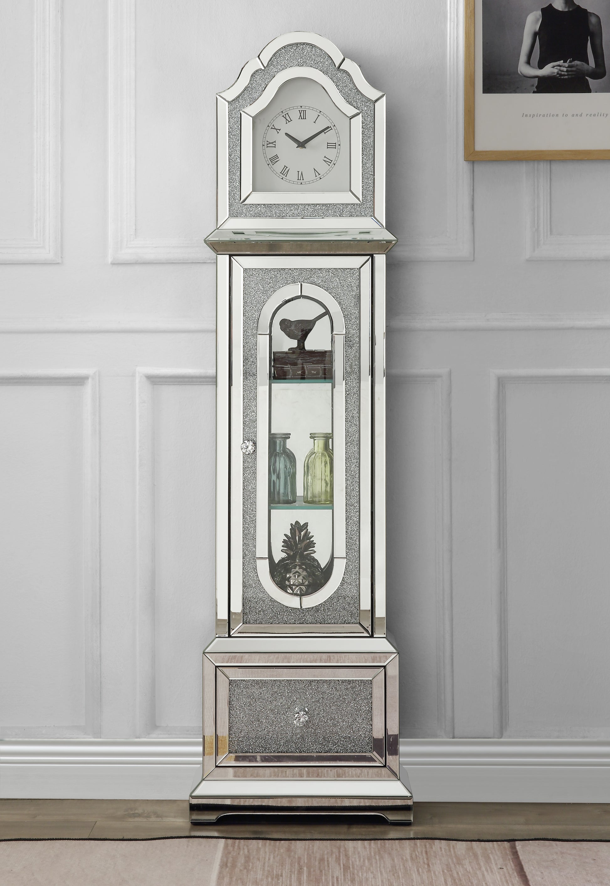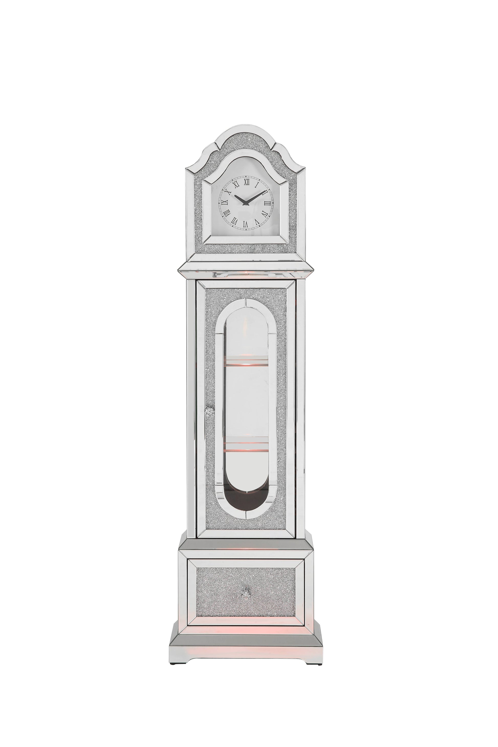 Noralie Grandfather Clock W Led Mirrored & Faux Diamonds Ac00347 Silver Glass