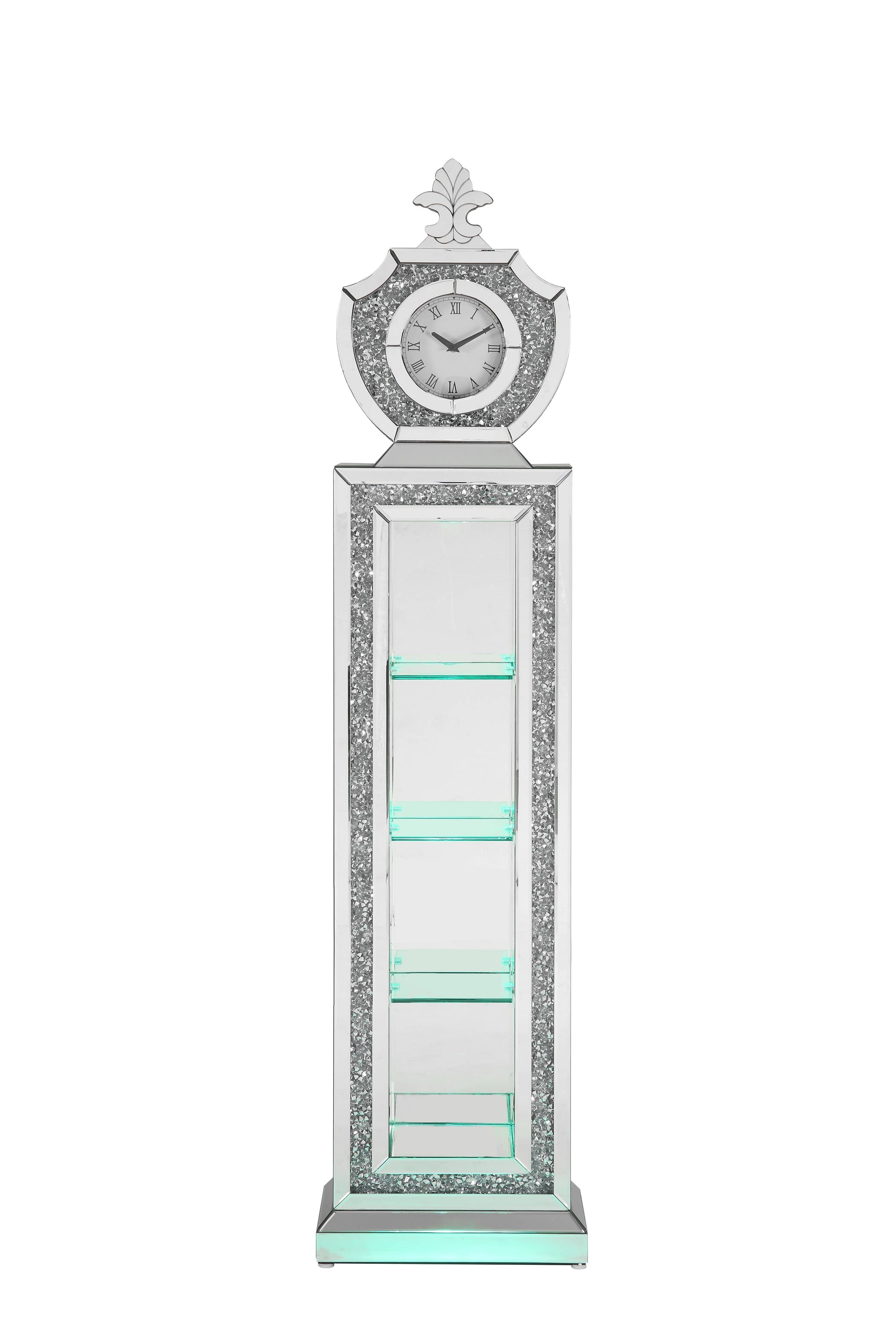 Noralie Grandfather Clock W Led Mirrored & Faux Diamonds Ac00351 Silver Glass