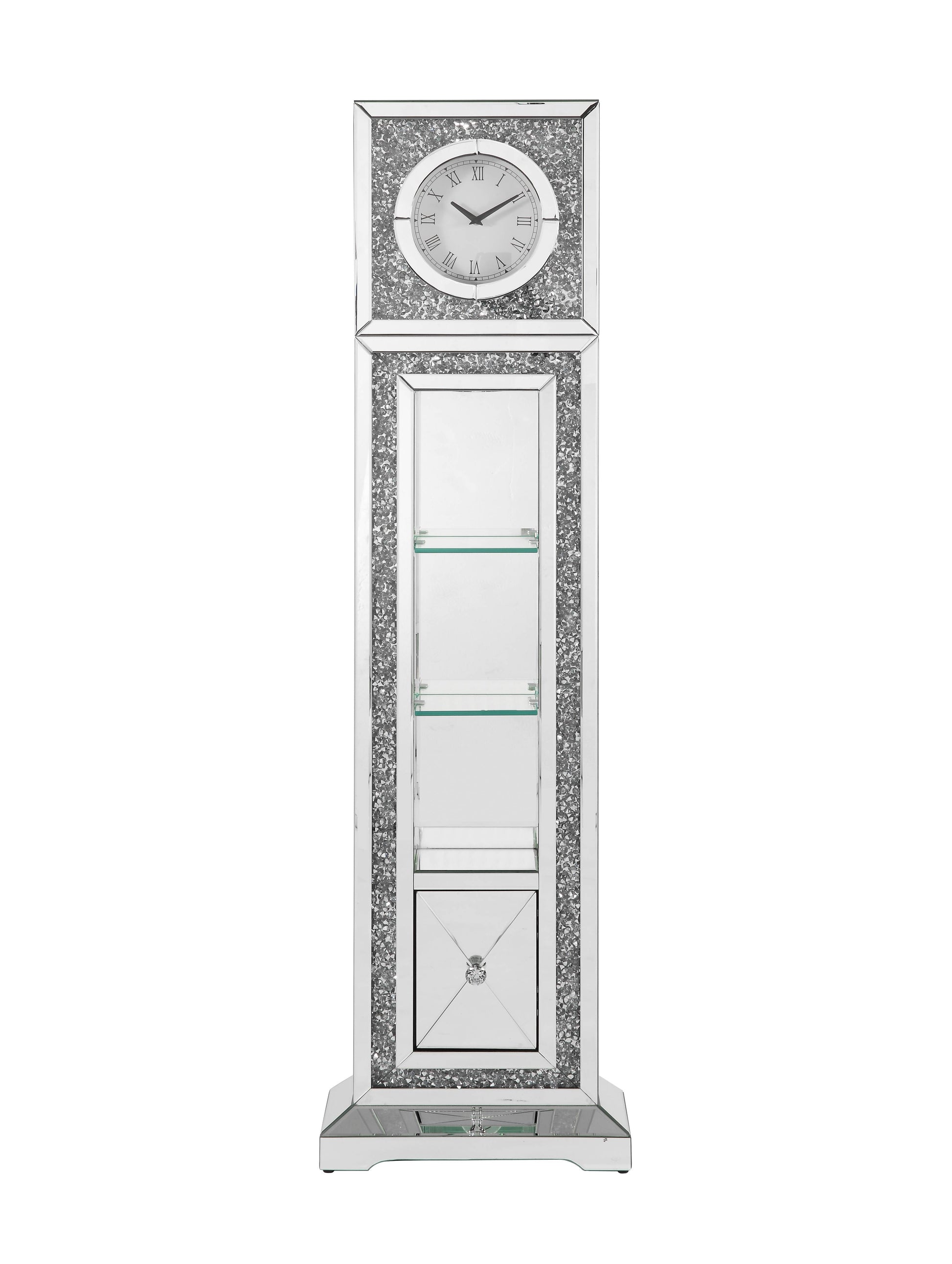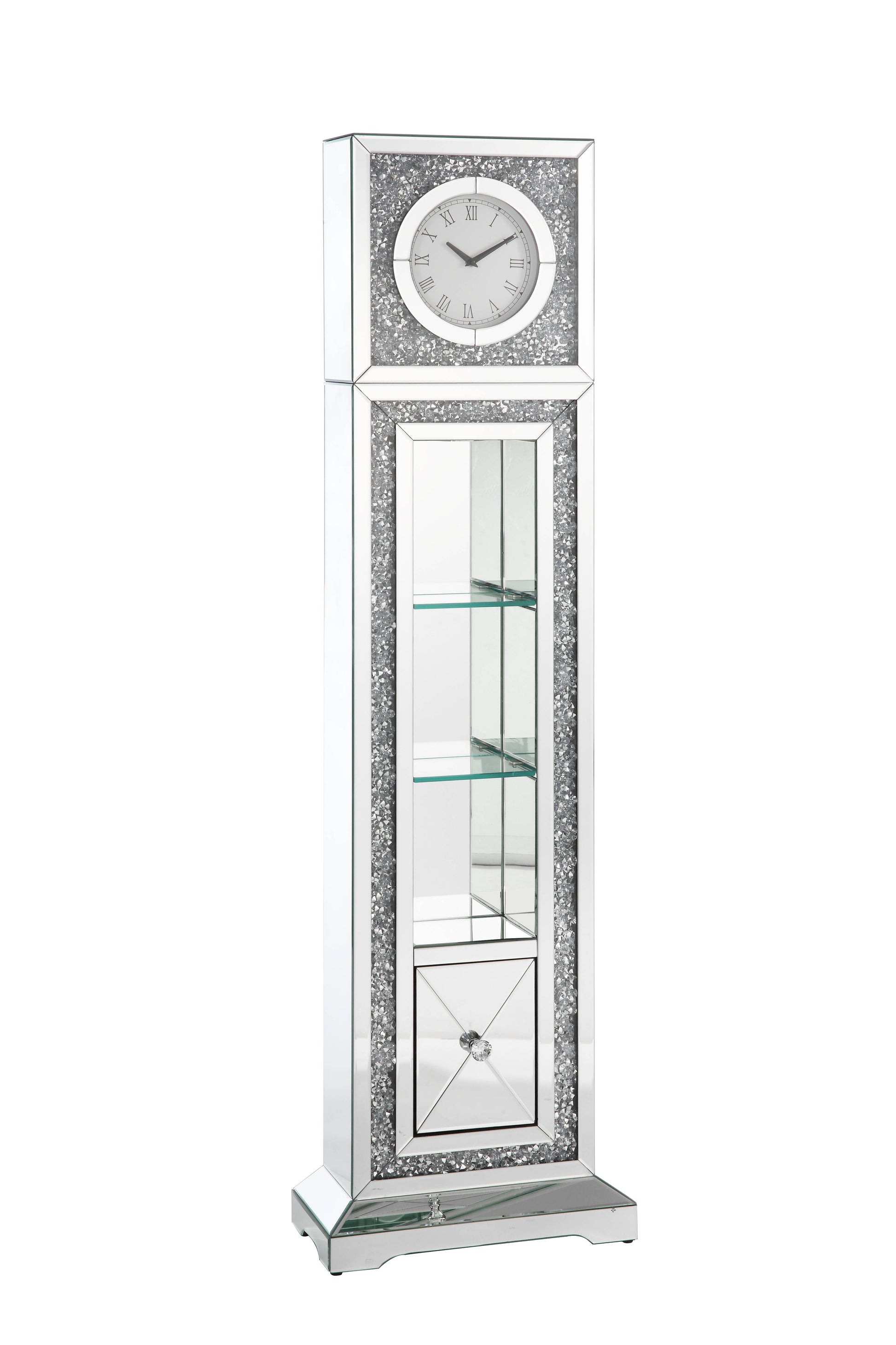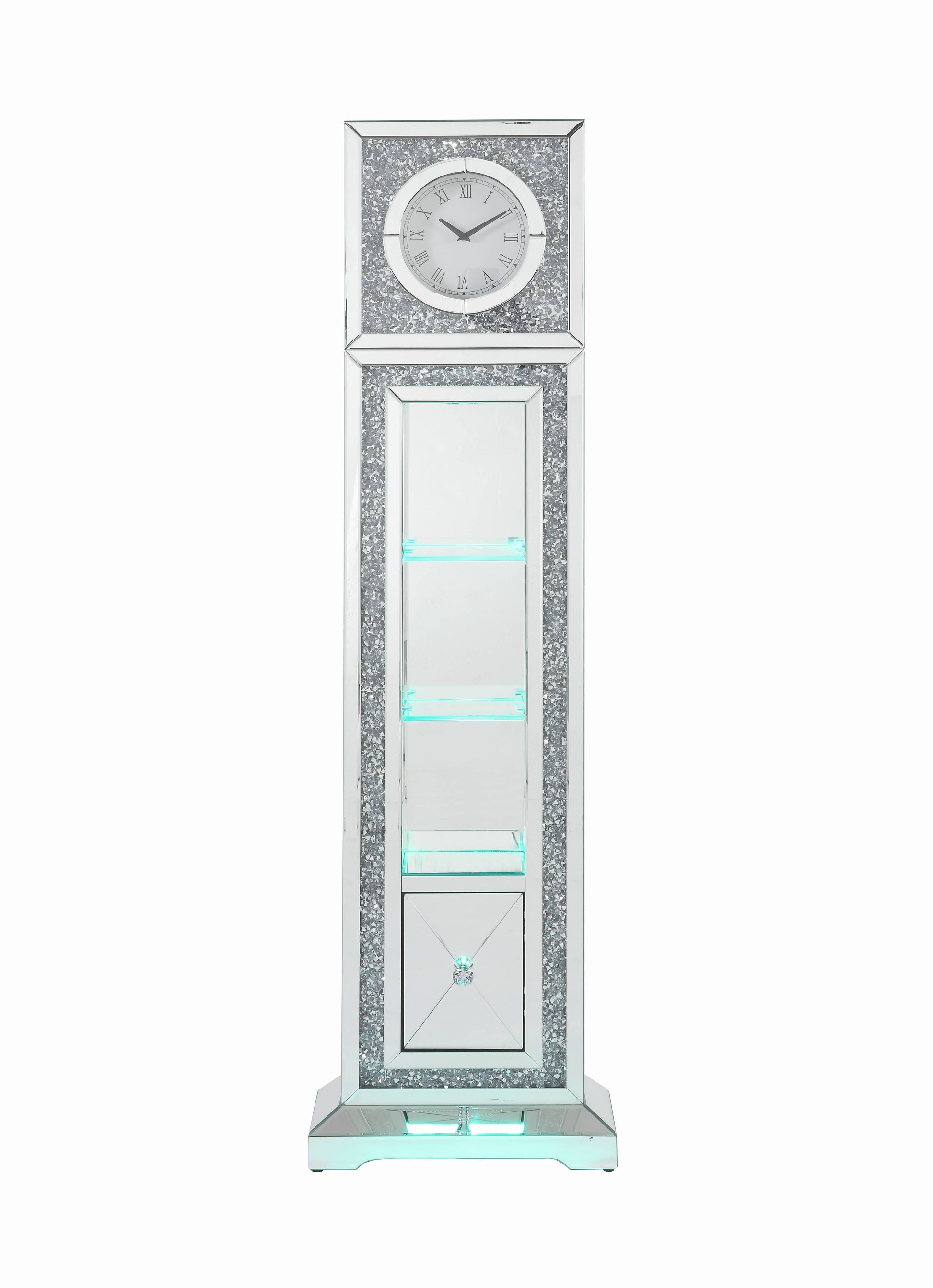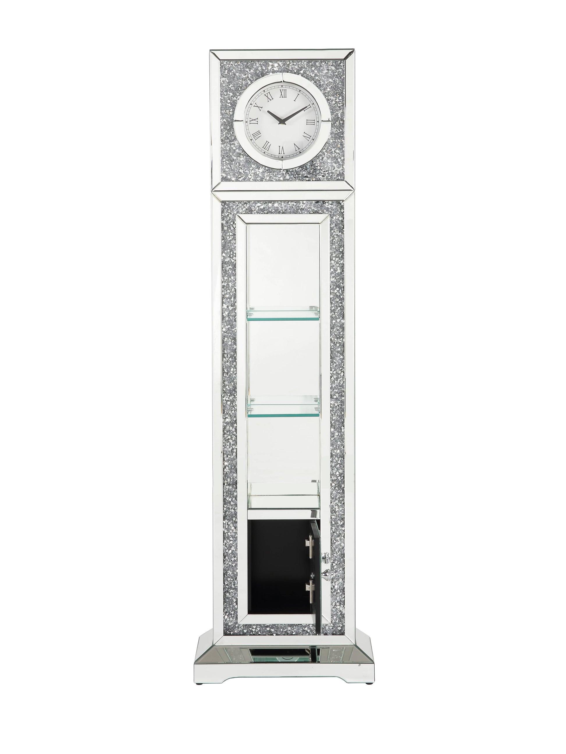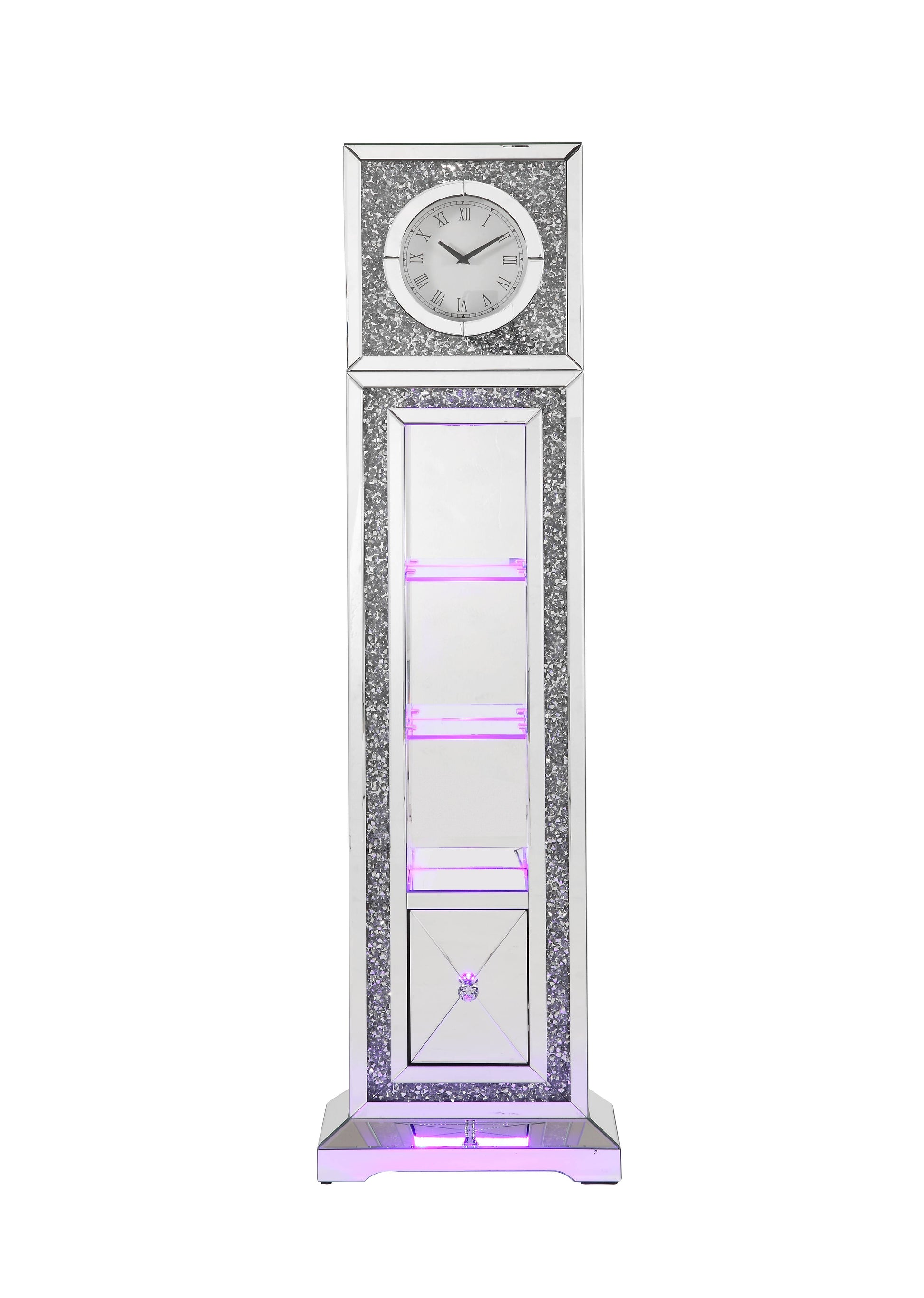 Noralie Grandfather Clock W Led Mirrored & Faux Diamonds Ac00354 Silver Glass