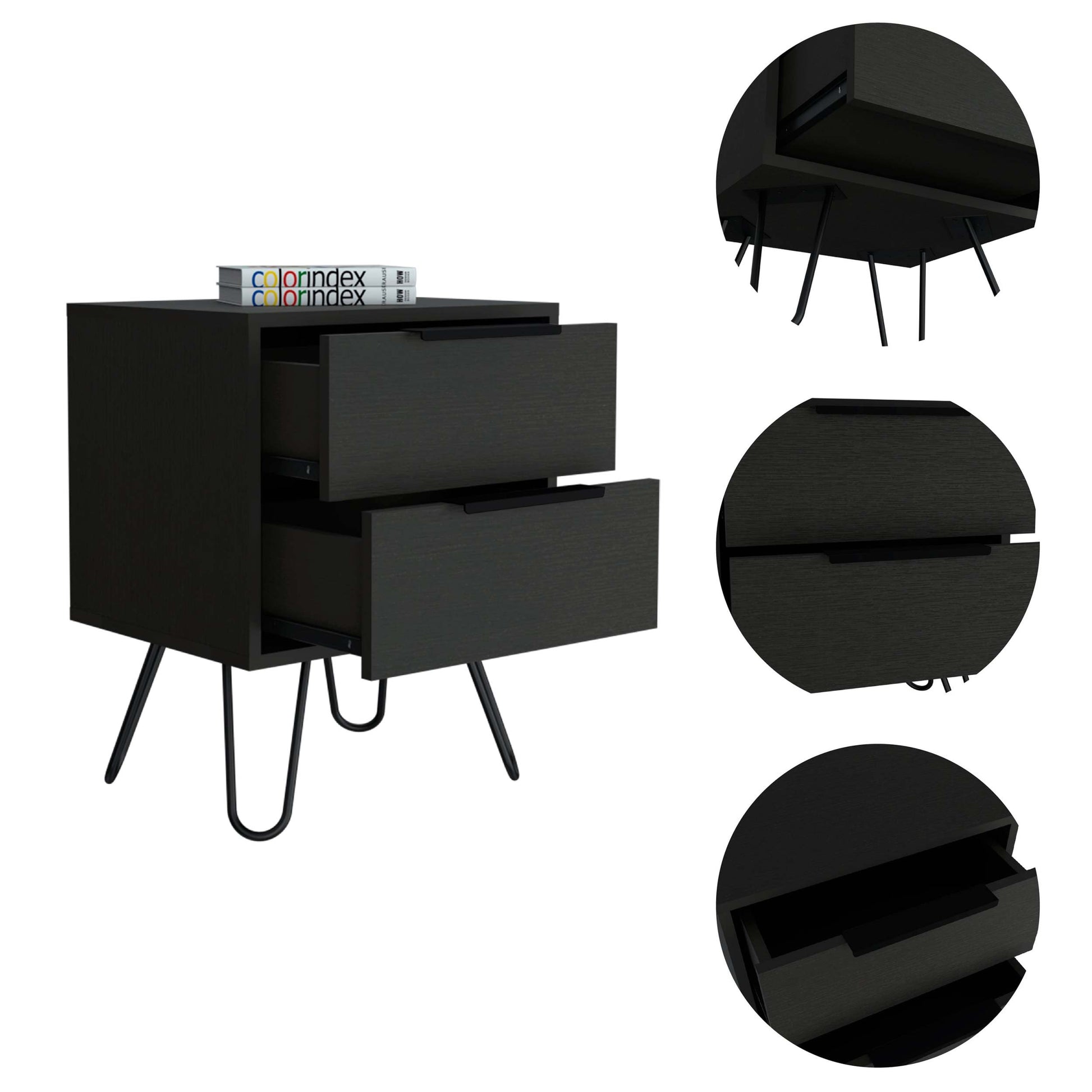 Nuvo 2 Nightstand,Two Drawers, Hairpin Legs Black Mdf Engineered Wood