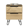 Nuvo 2 Nightstand,Two Drawers, Hairpin Legs Light Oak Pine Engineered Wood