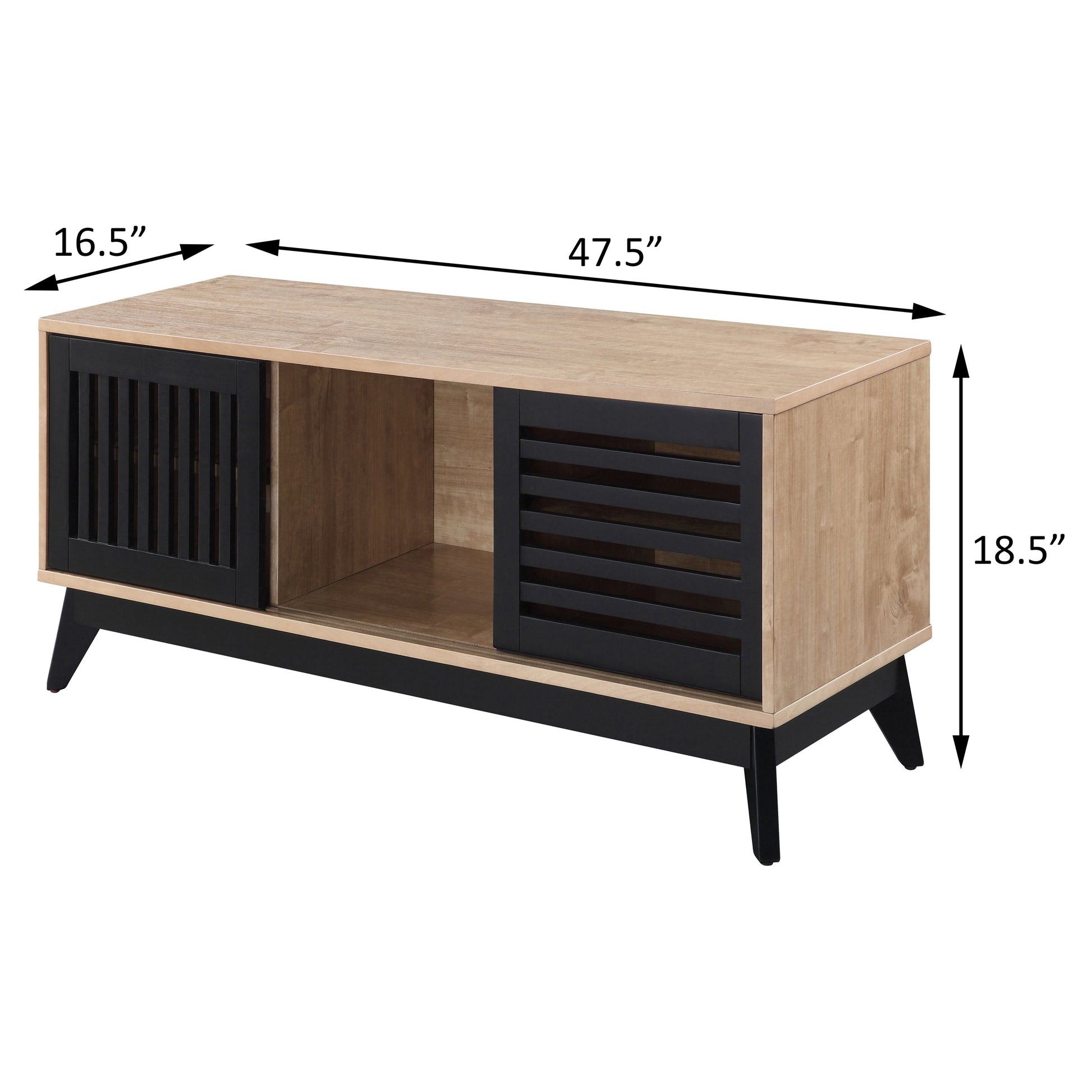 Oak And Espresso Tv Stand With Open Shelving Oak Primary Living Space 50 59 Inches Modern Poplar Wood Paper