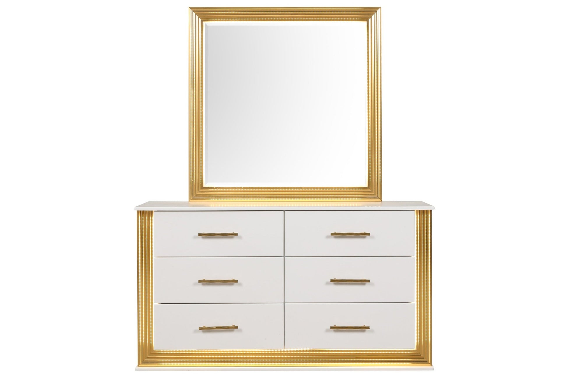 Obsession Contemporary Style 6 Drawer Dresser Made With Wood & Gold Finish White Bedroom Contemporary,Modern Wood