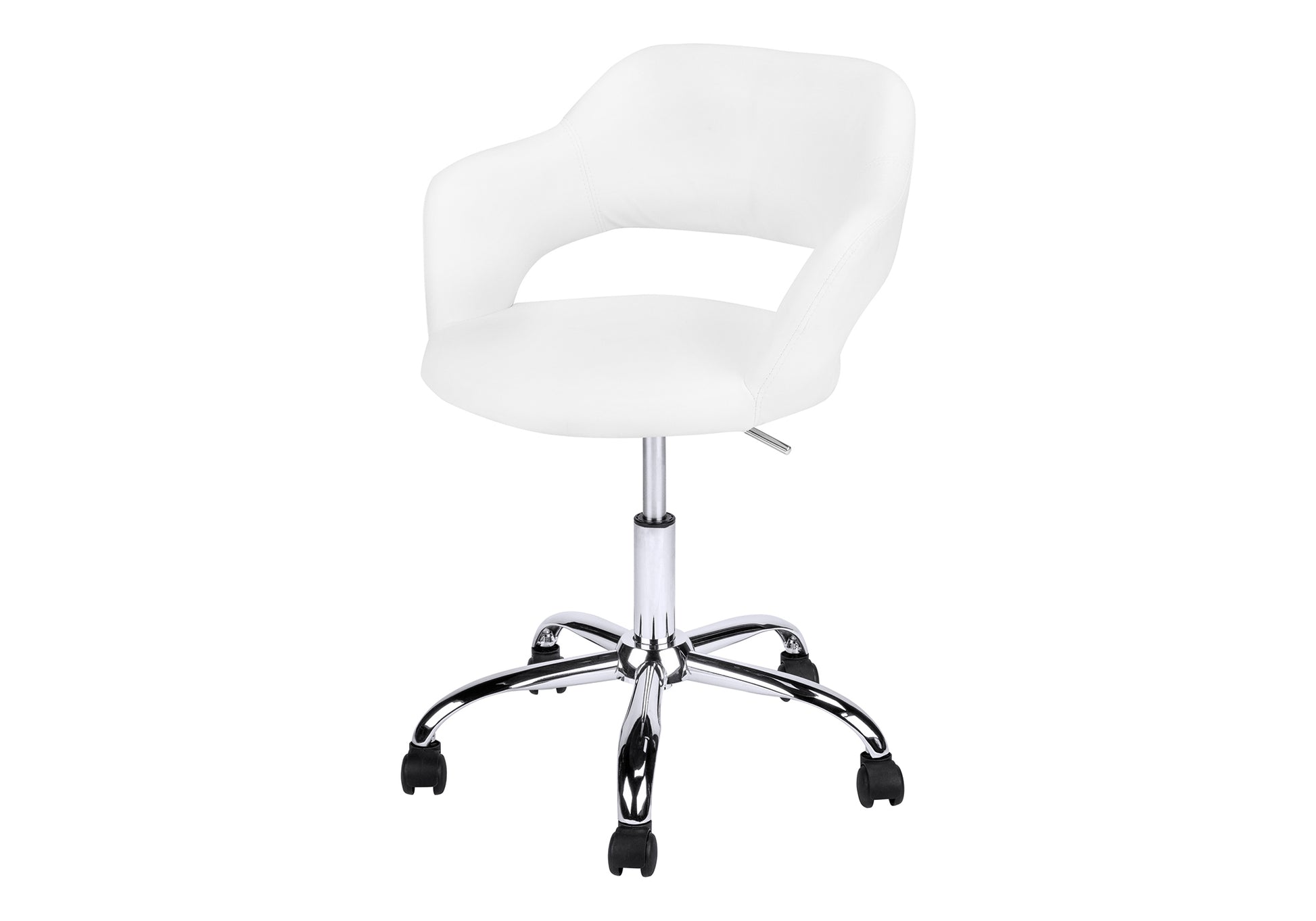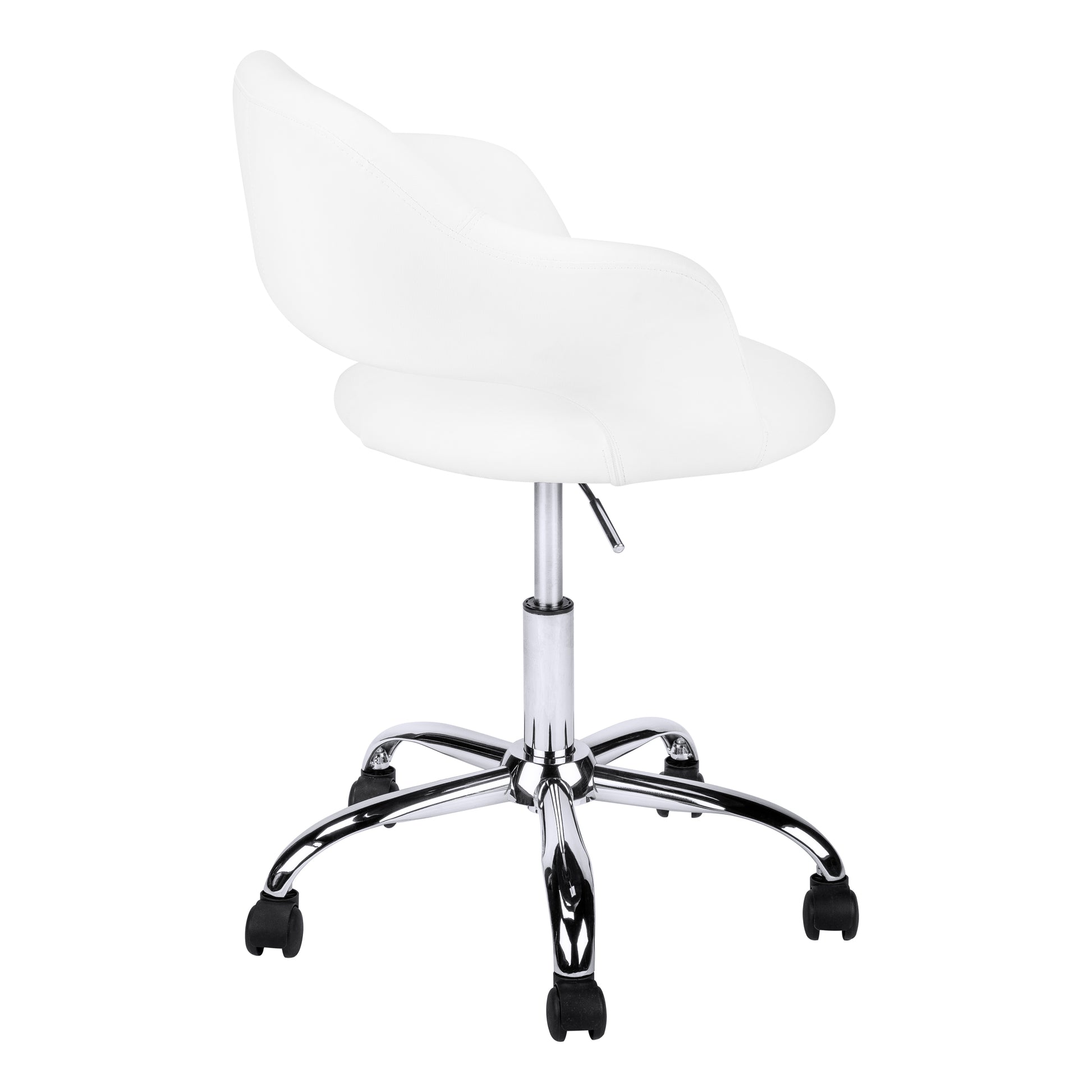Office Chair, Adjustable Height, Swivel, Ergonomic, Armrests, Computer Desk, Work, White Leather Look, Chrome Metal, Contemporary, Modern White Foam Faux Leather