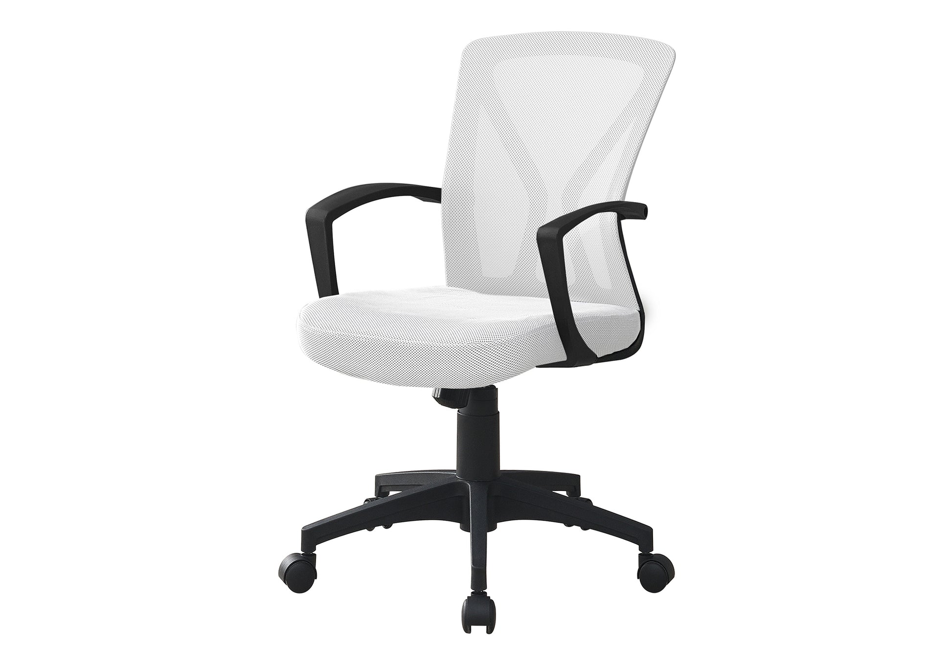 Office Chair, Adjustable Height, Swivel, Ergonomic, Armrests, Computer Desk, Work, White Mesh, Black Metal, Contemporary, Modern White Foam Polyester