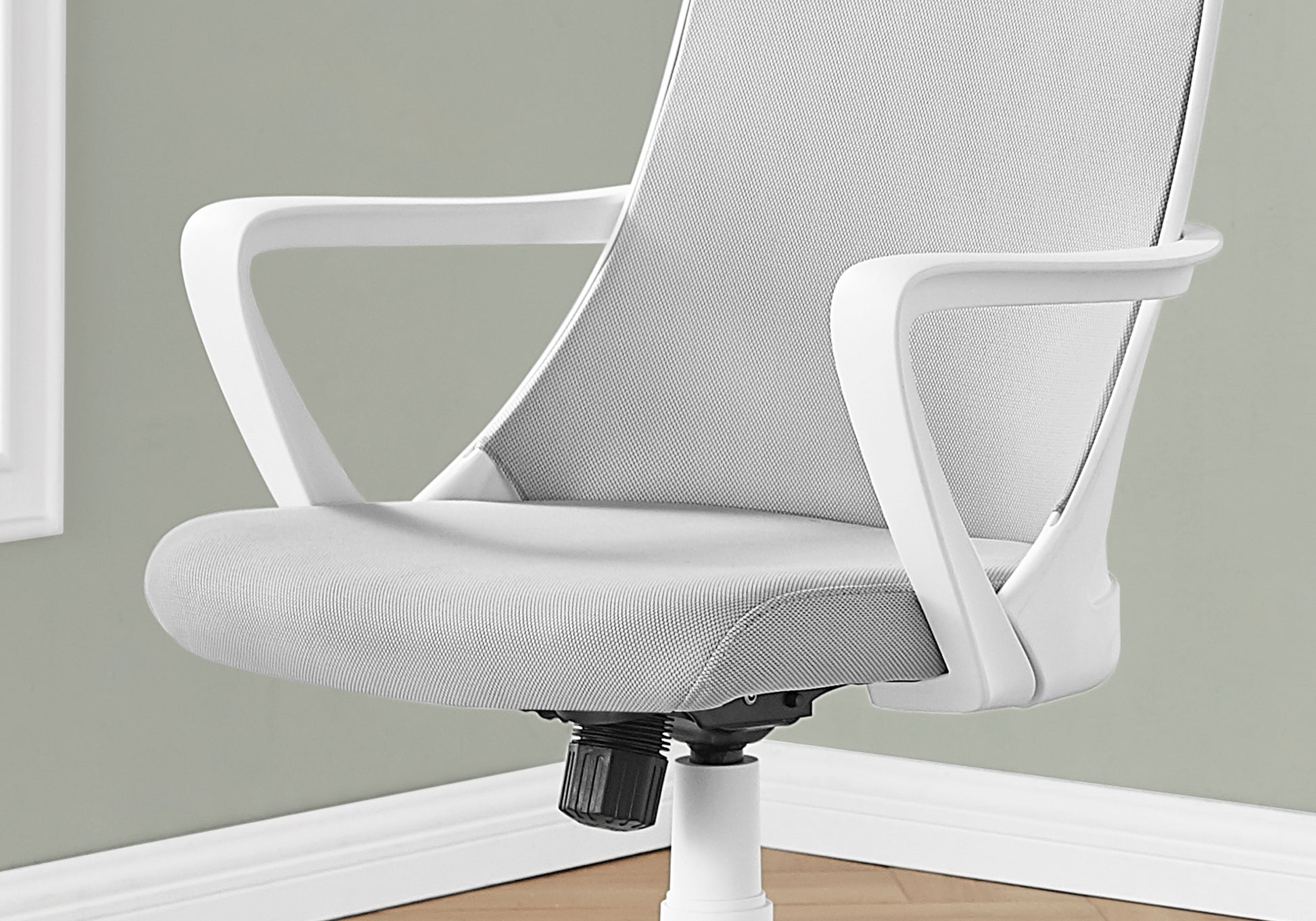 Office Chair, Adjustable Height, Swivel, Ergonomic, Armrests, Computer Desk, Work, Grey Mesh, White Metal, Contemporary, Modern White Foam Polyester
