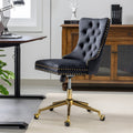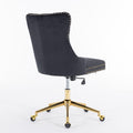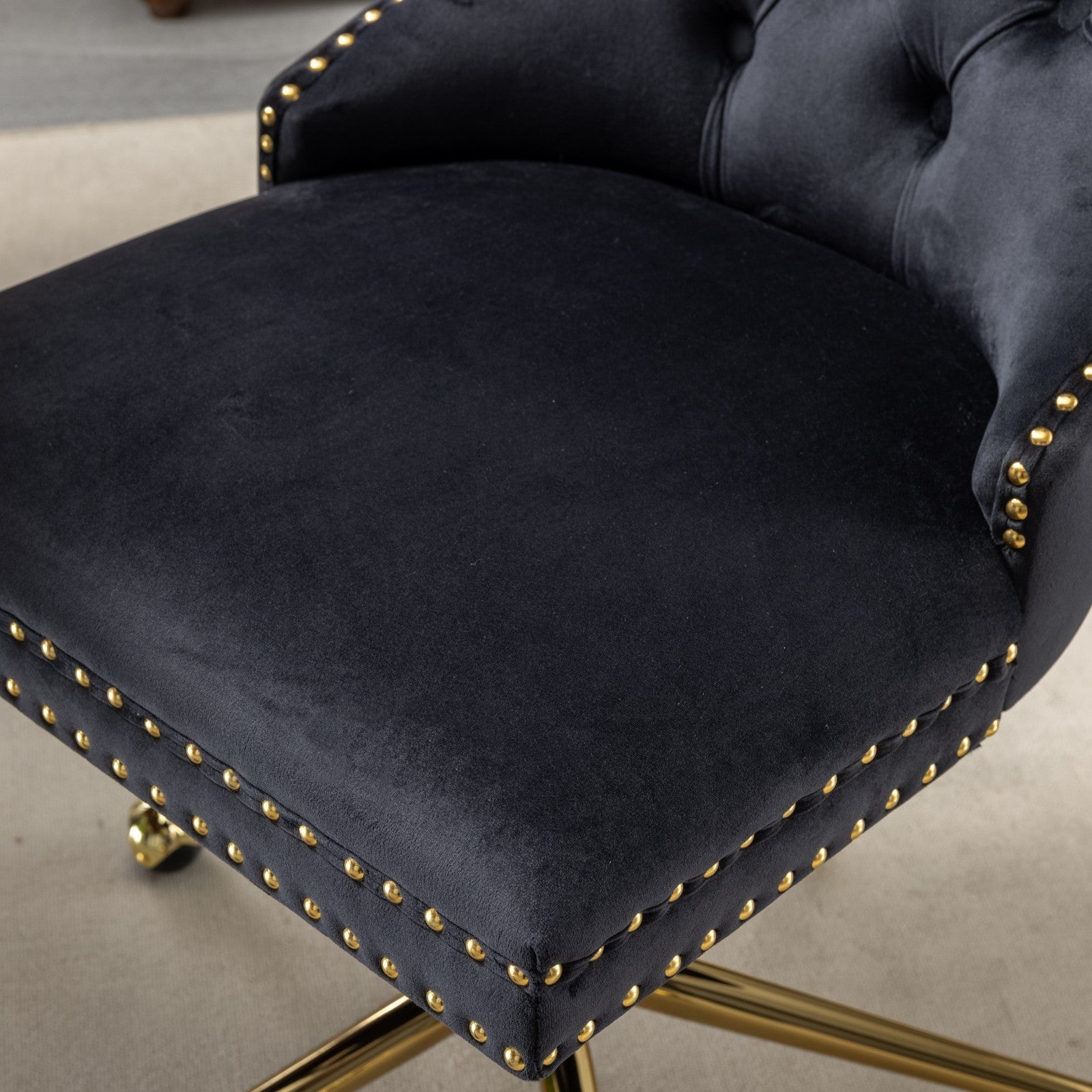 Office Chair,Velvet Upholstered Tufted Button Home Office Chair With Golden Metal Base,Adjustable Desk Chair Swivel Office Chair Black Black Velvet