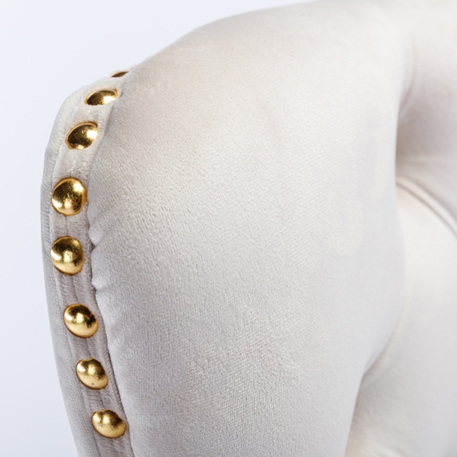 Office Chair,Velvet Upholstered Tufted Button Home Office Chair With Golden Metal Base,Adjustable Desk Chair Swivel Office Chair Beige Beige Velvet