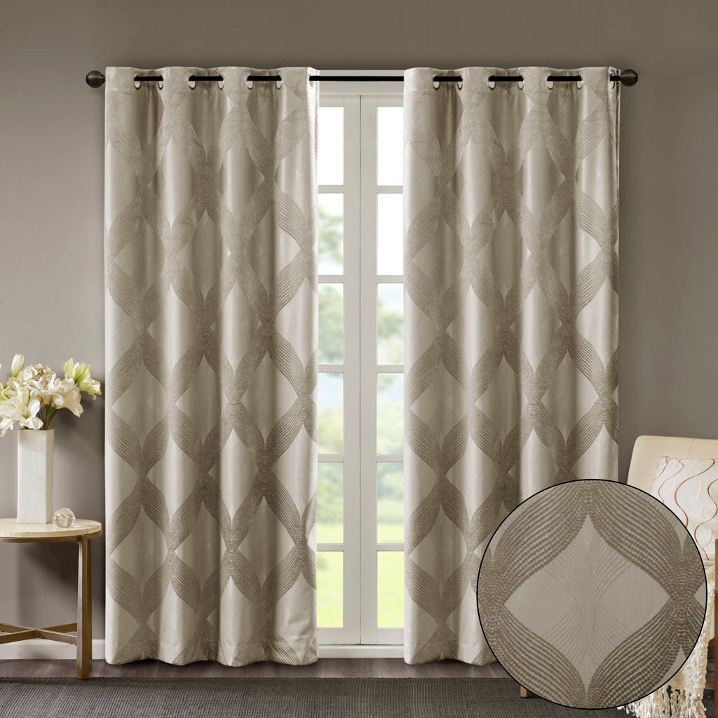 Ogee Knitted Jacquard Total Blackout Curtain Panel Only 1 Pc Panel Taupe Polyester