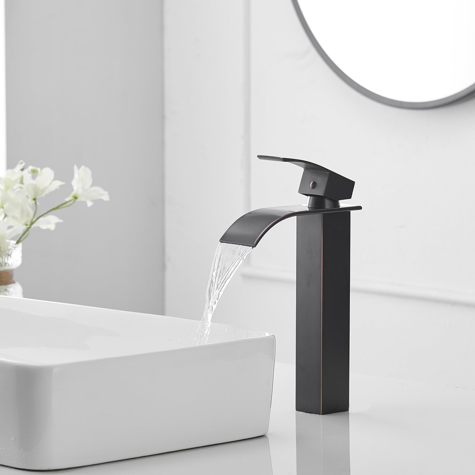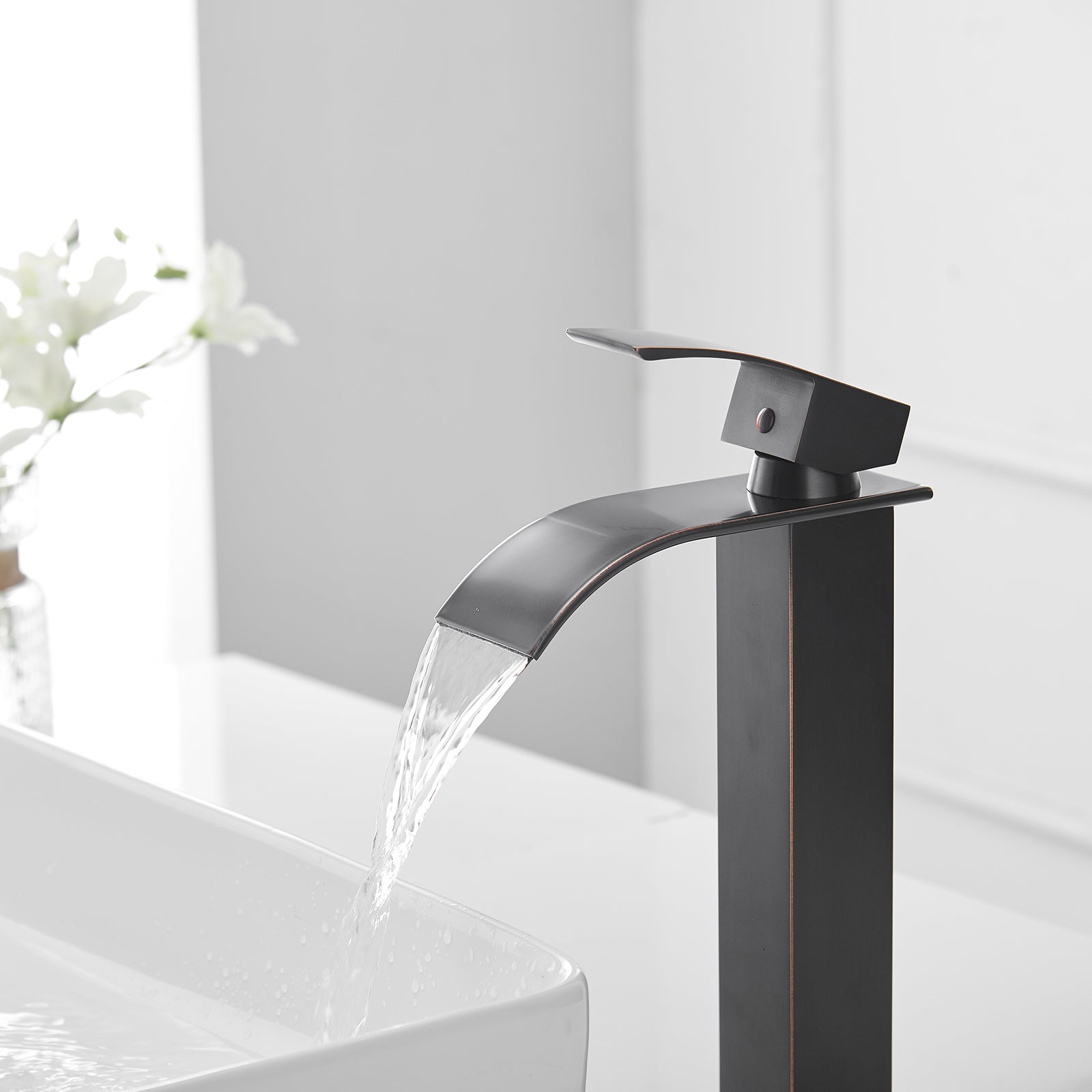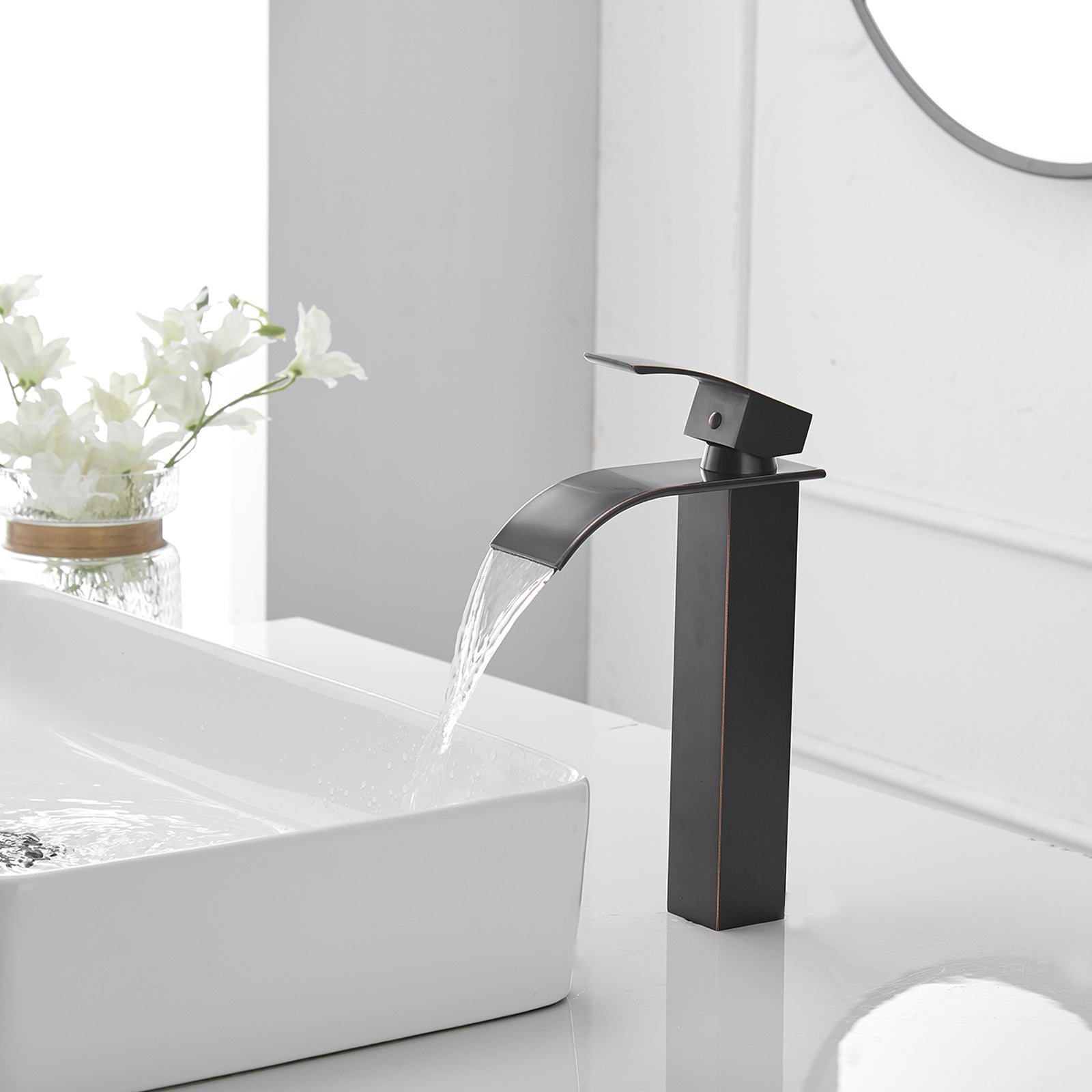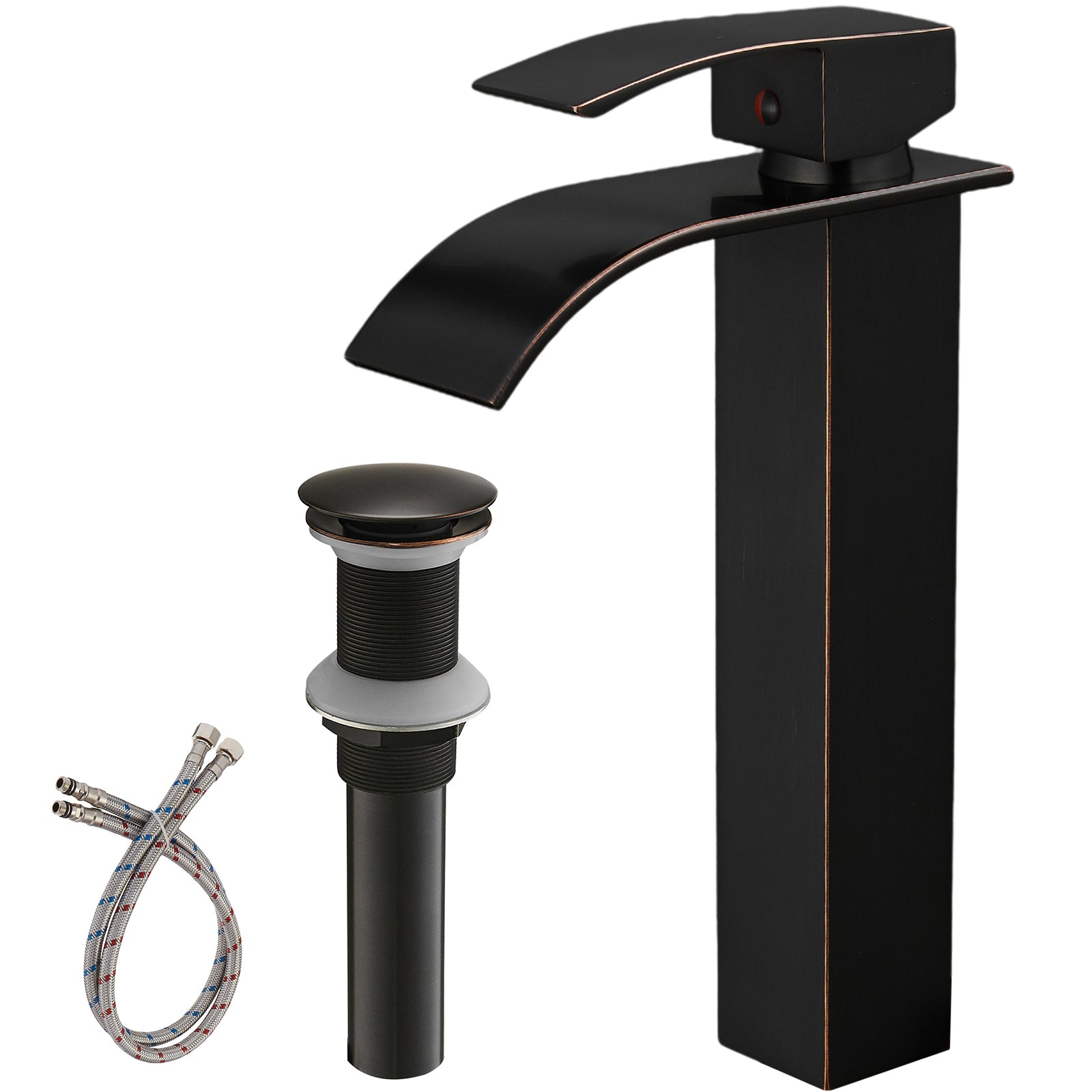 Oil Rubbed Bronze Waterfall Single Handle Low Arc Bathroom Faucet With Drain Oil Rubbed Bronze Brass