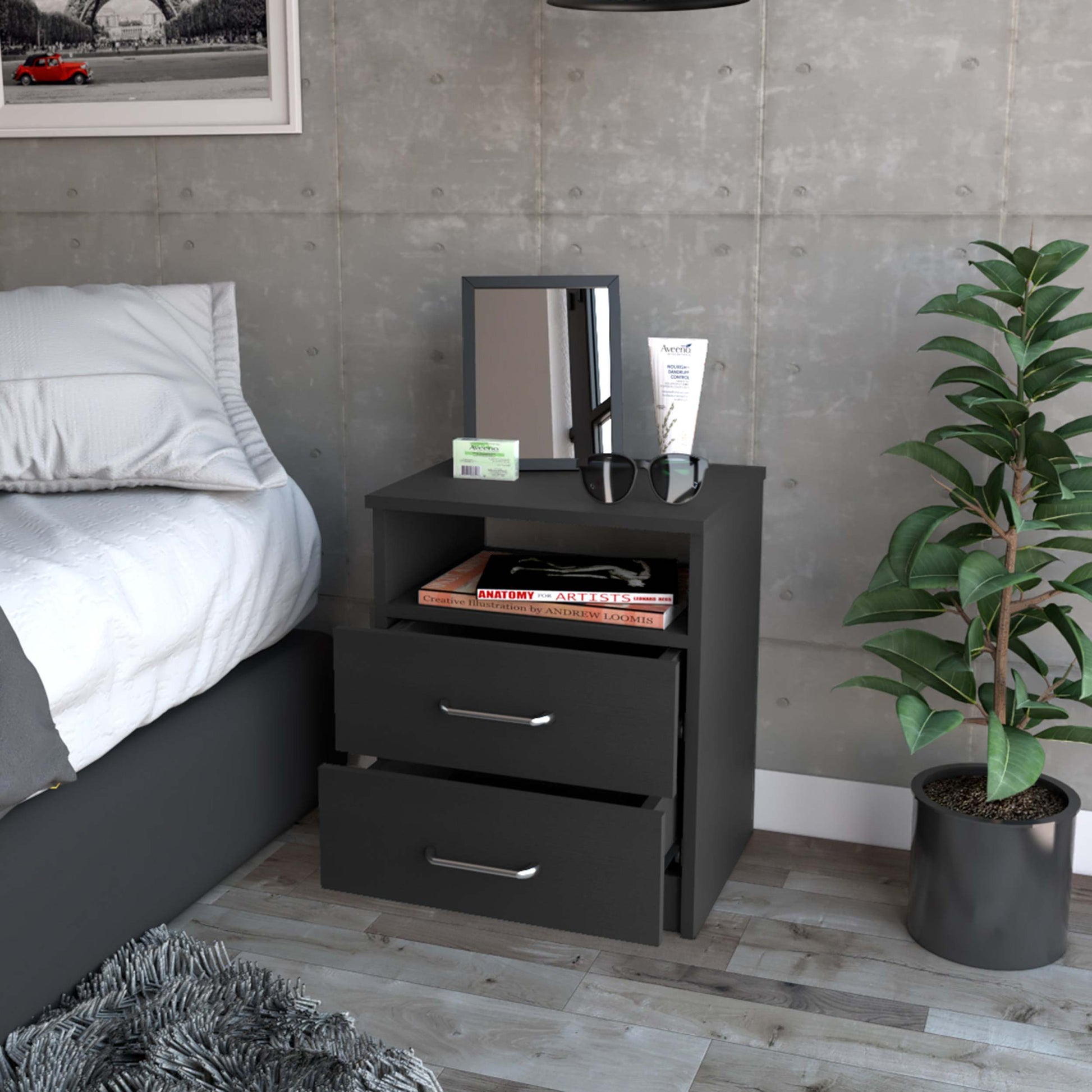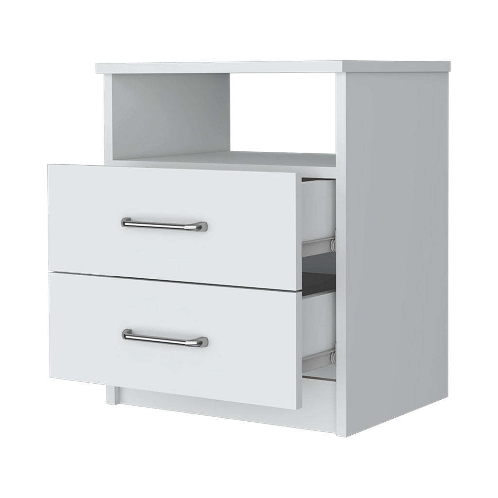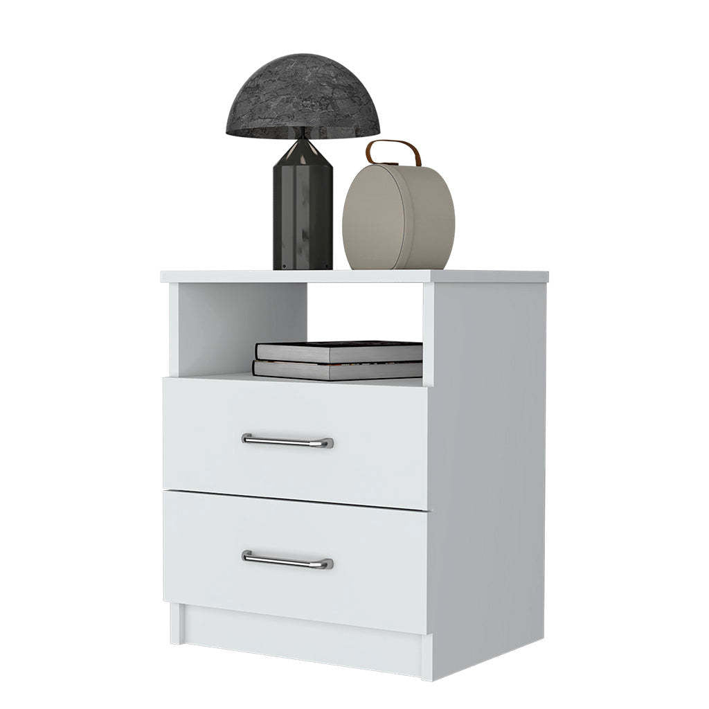 Oklahoma Nightstand,Two Drawers, One Shelf White Mdf Engineered Wood
