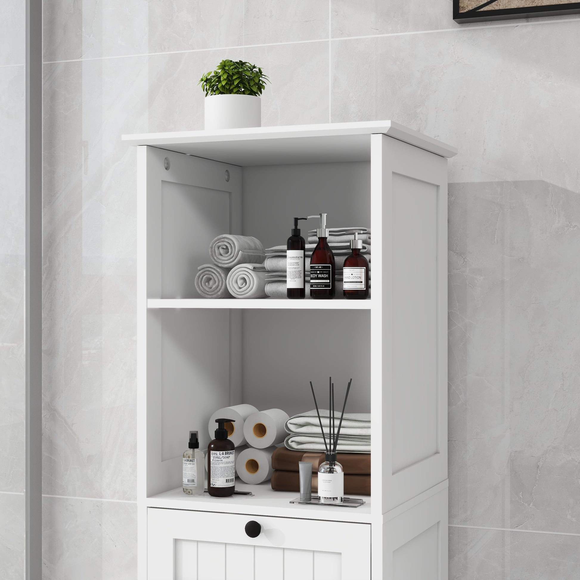 One Compartment One Drawer Tilt Out Laundry Sorter Cabinet White White Mdf