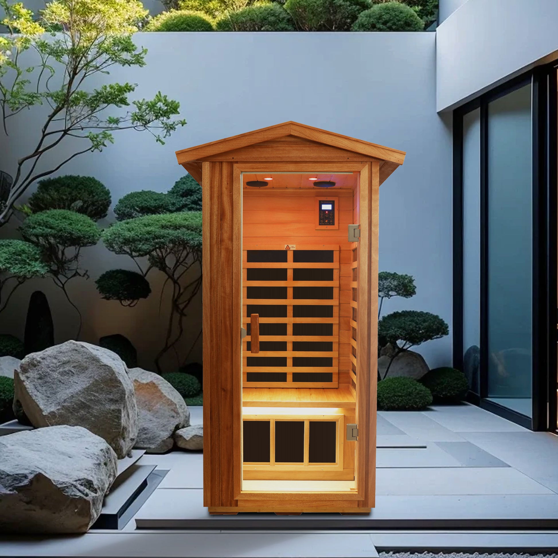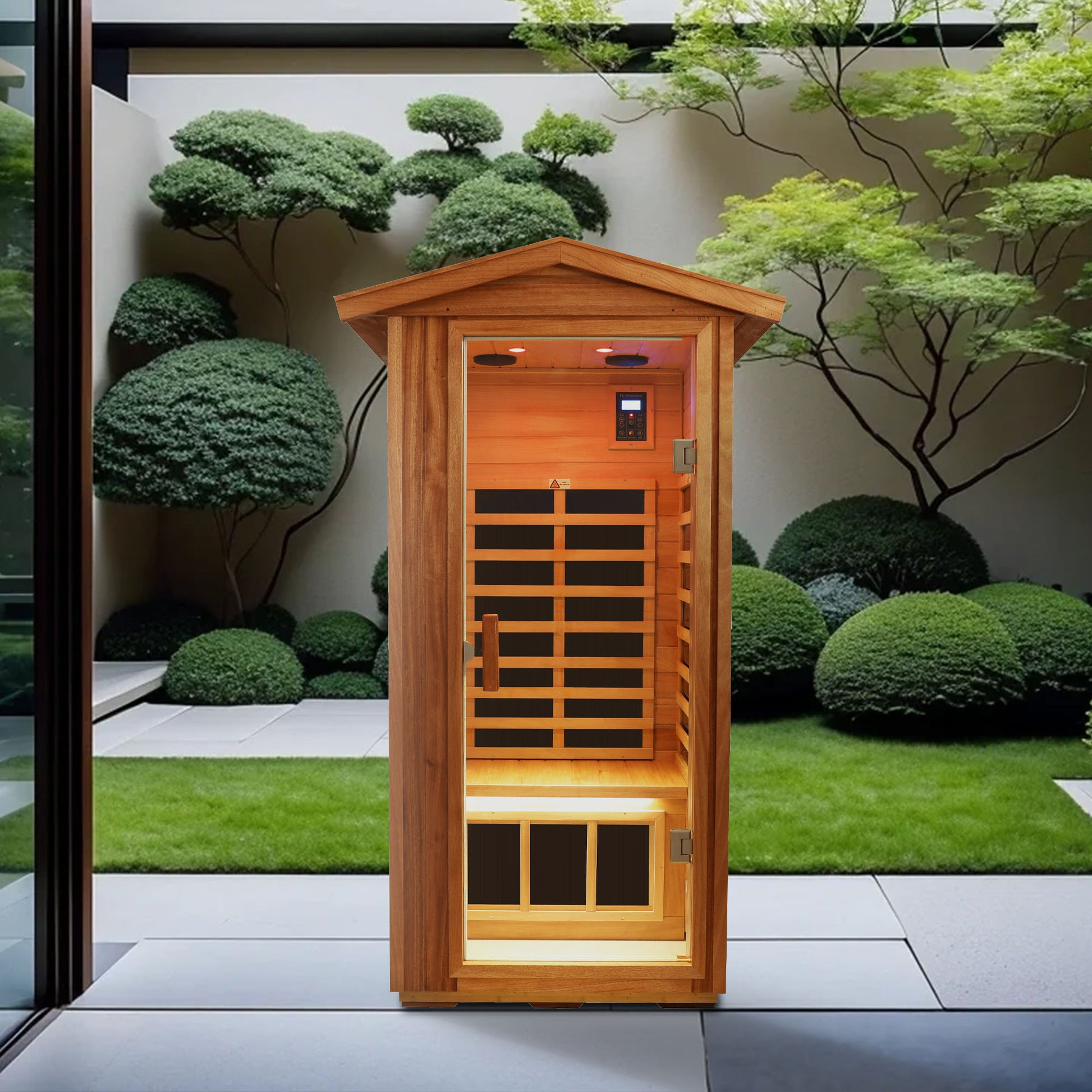 One People Outdoor Okoume Wood Far Infrared Sauna Room Natural Wood Metal & Wood