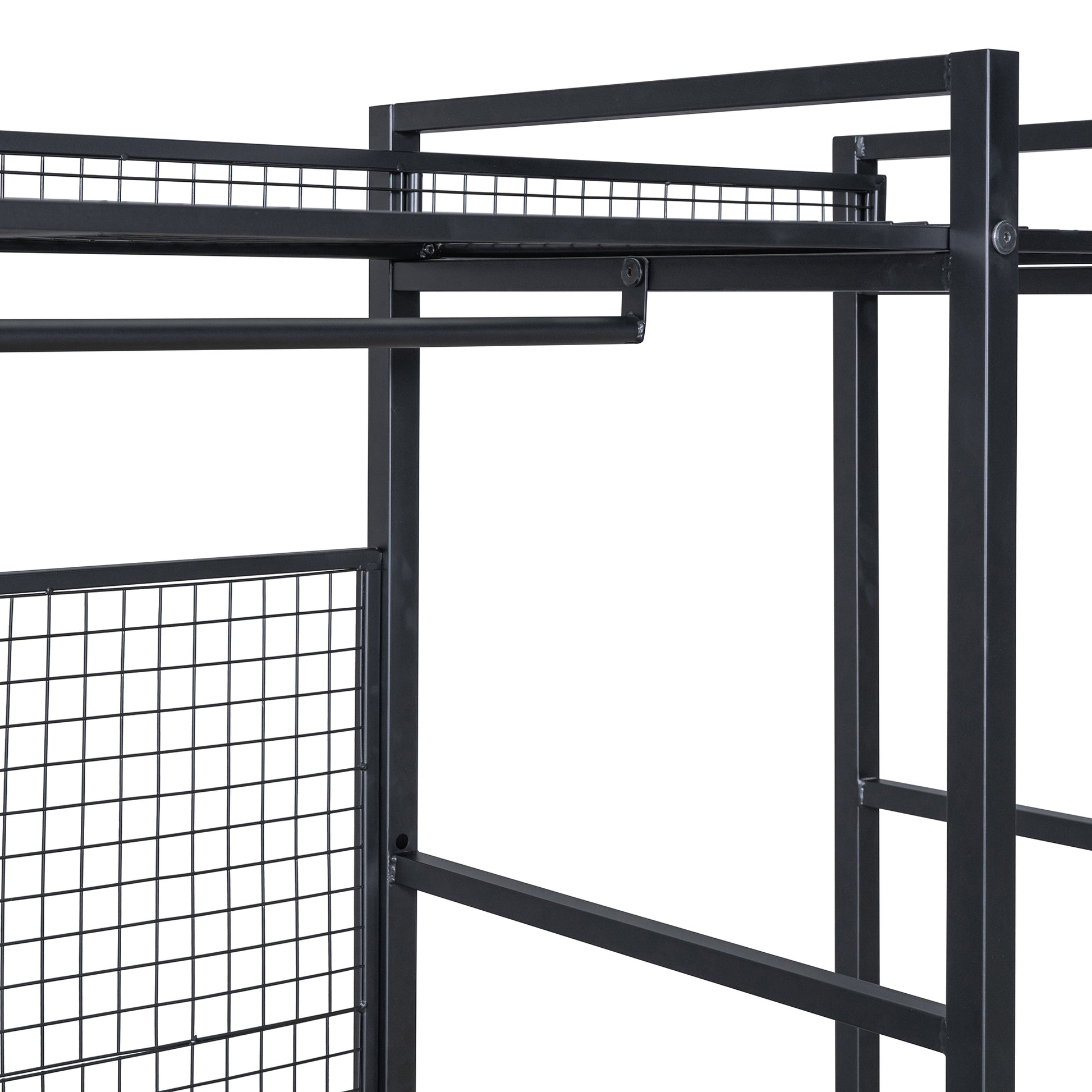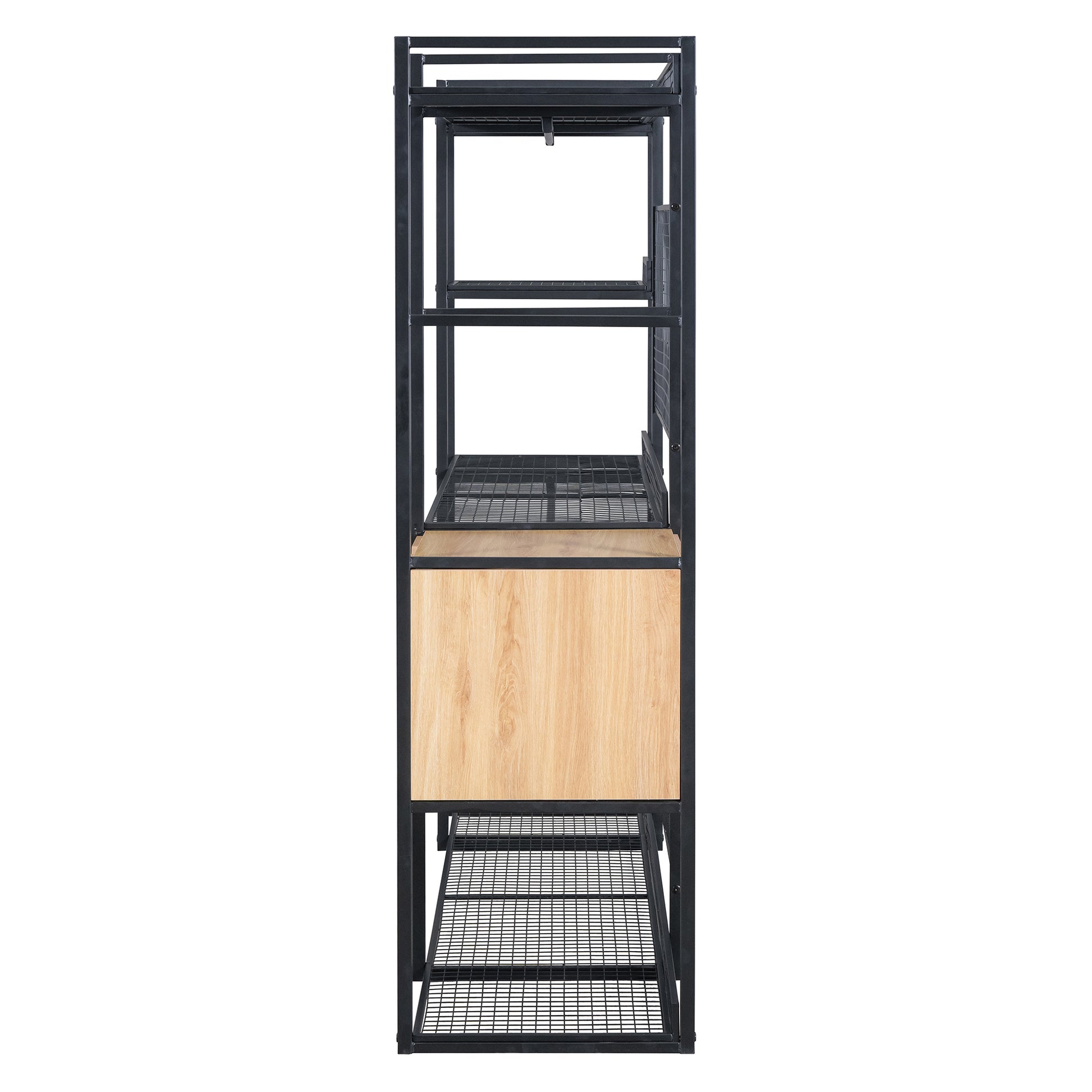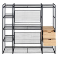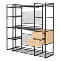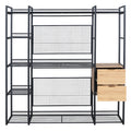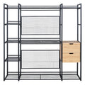 Open Style Wardrobe With Hanging Rails, Shelves And Drawers, Black Black Metal & Wood