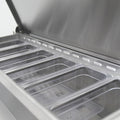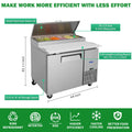 Orikool 44 In Commercial Pizza Prep Table With A Built In Refrigerator 11 Cu.Ft, Butcher Block Cutting Board, Protection Lid, Cold Storage, And Smooth Rolling Casters, Etl Certified Silver Stainless Steel