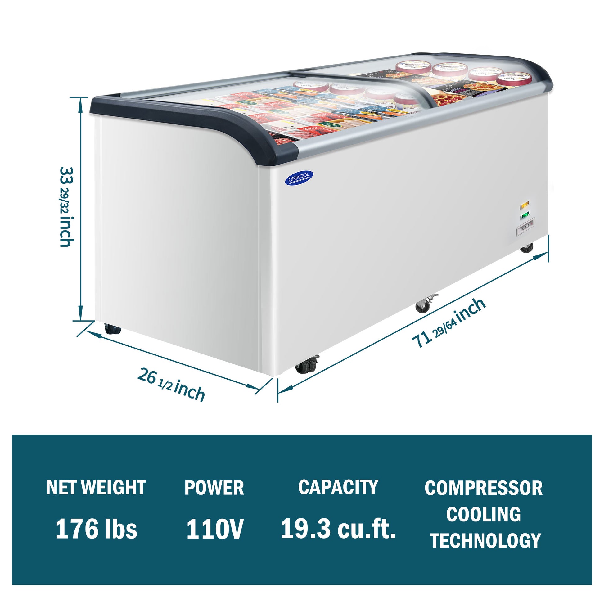 Orikool Curved Top Display Freezer 19.3 Cu.Ft Sliding Glass Lid Ice Cream Freezers Commercial Mobile Chest Freezer With Led Lighting White Steel