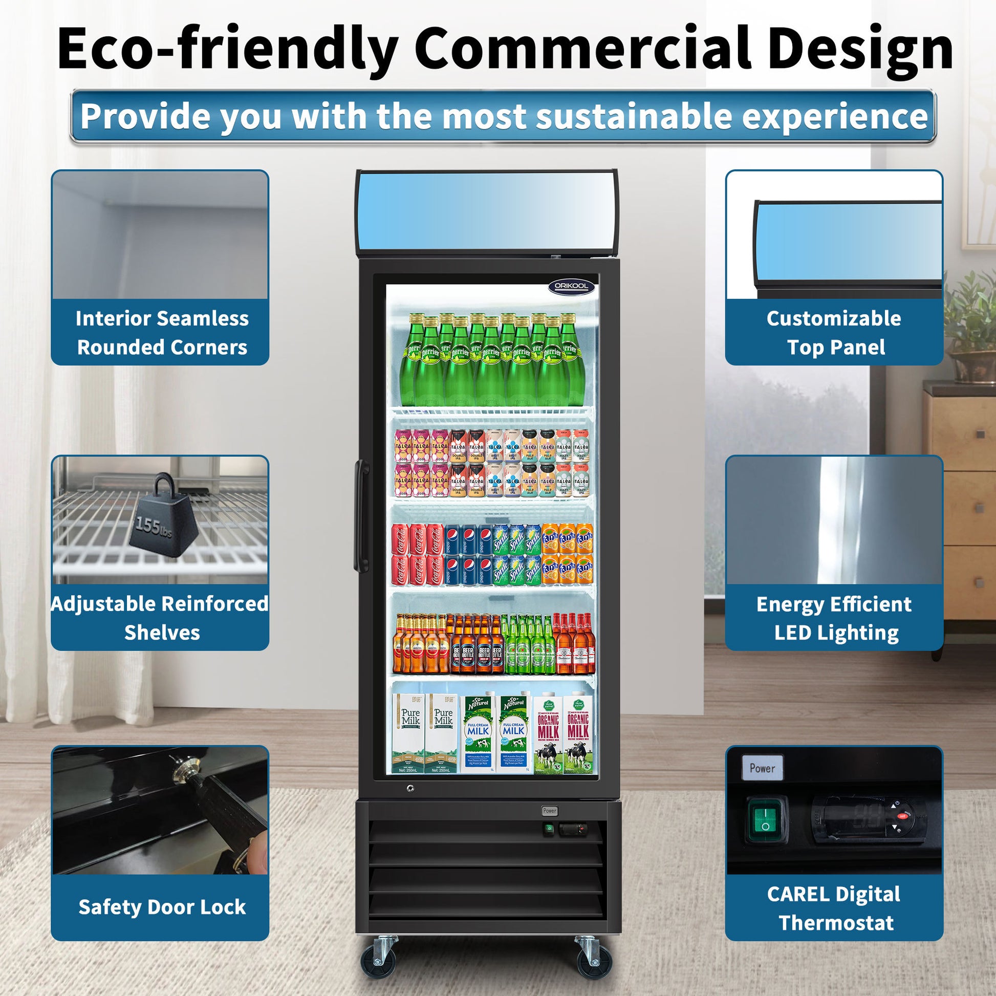 Orikool Glass Door Merchandiser Refrigerator 19.3 Cu.Ft Swing Door Commercial Display Refrigerators Merchandising Refrigeration With Led Top Panel Black Steel