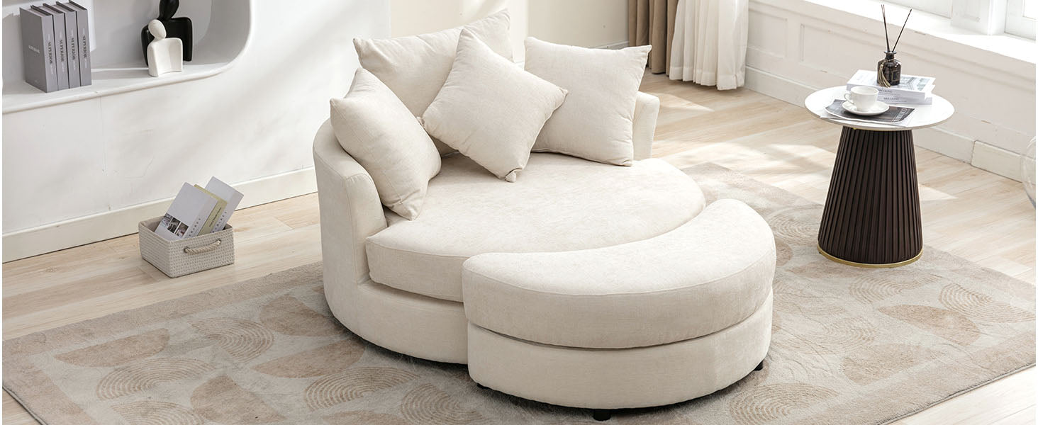 Orisfur. 360 Swivel Accent Barrel Chair With Storage Ottoman & 4 Pillows, Modern Chenille Leisure Chair Round Accent For Living Room, Cream Cream Foam Chenille