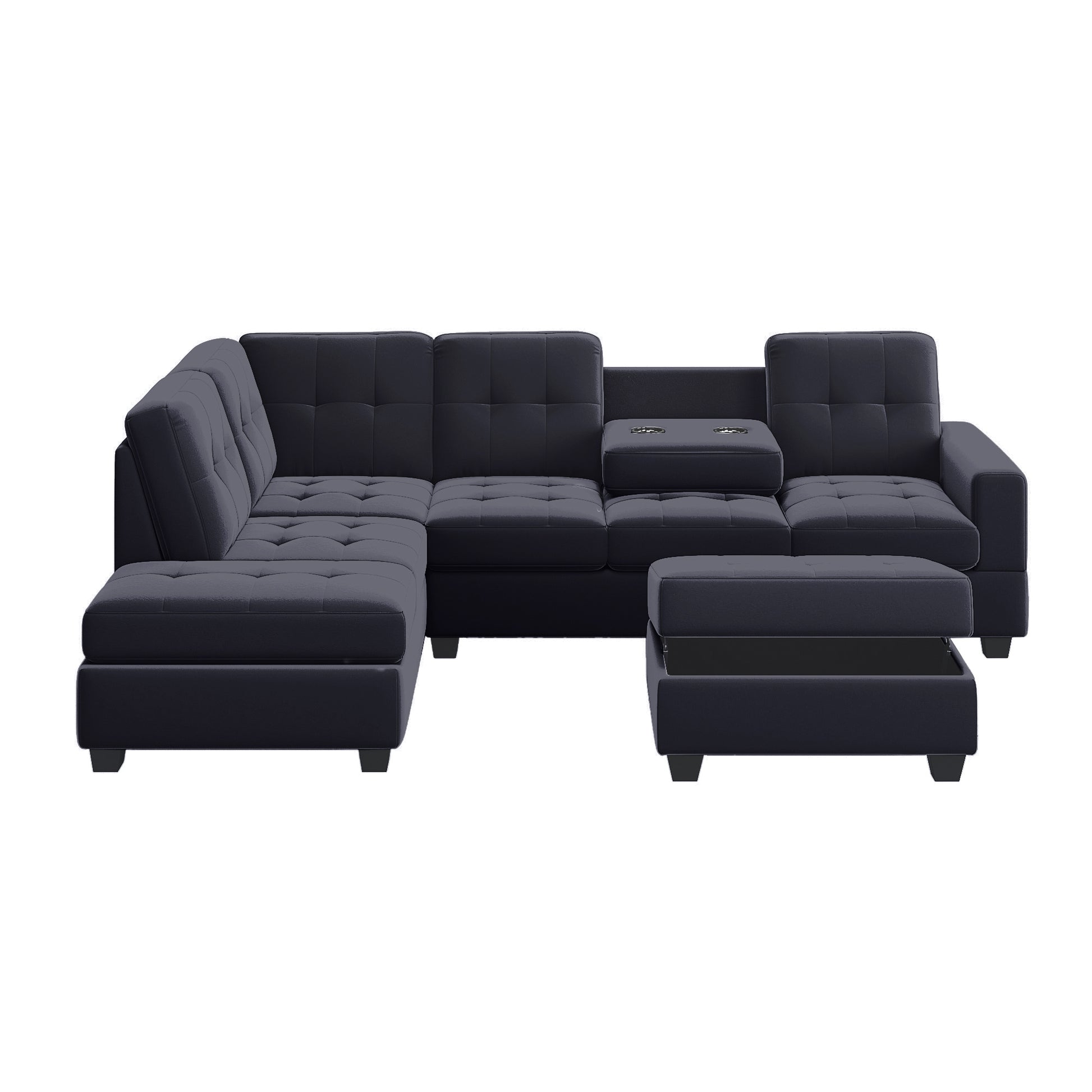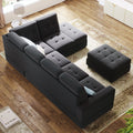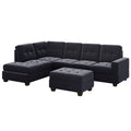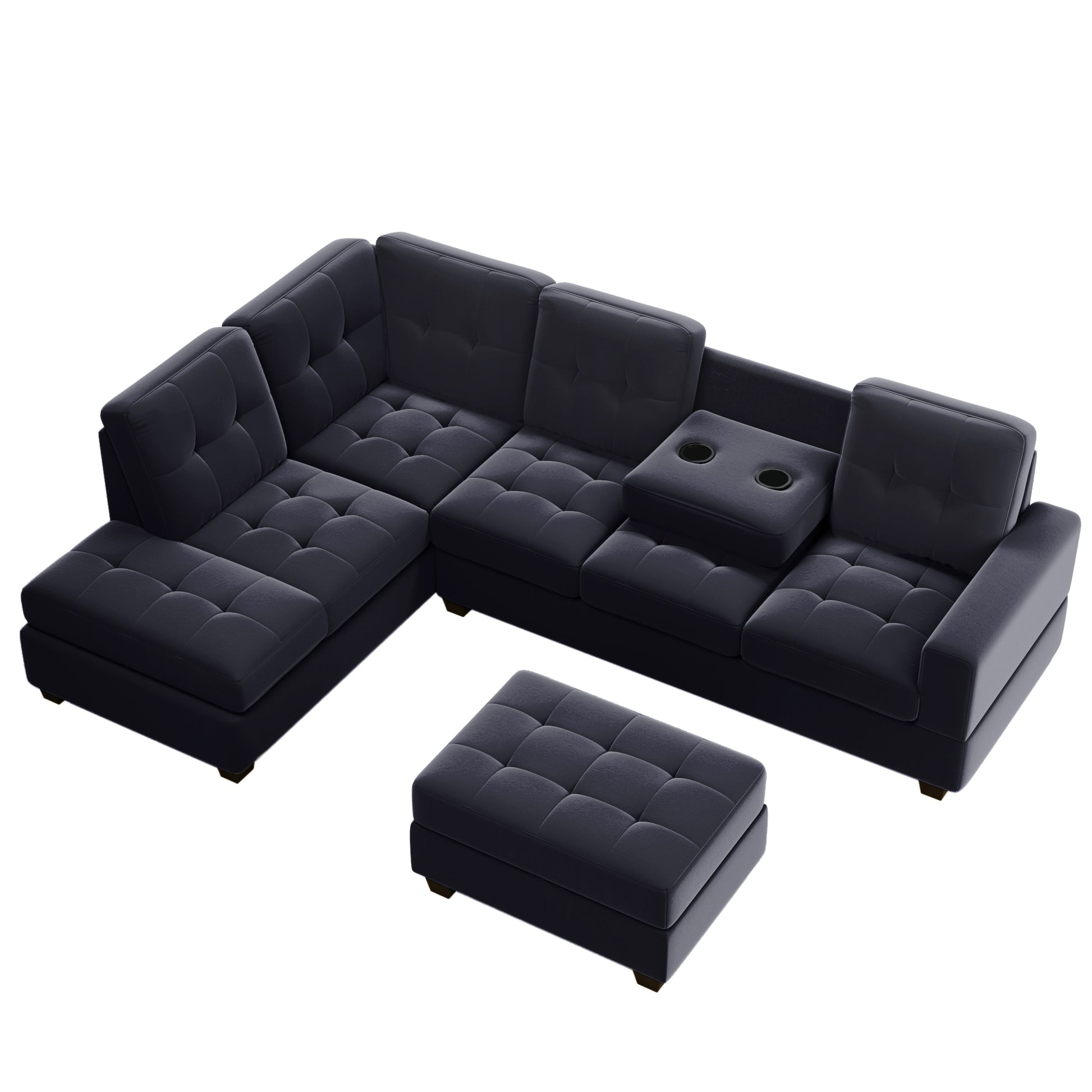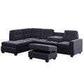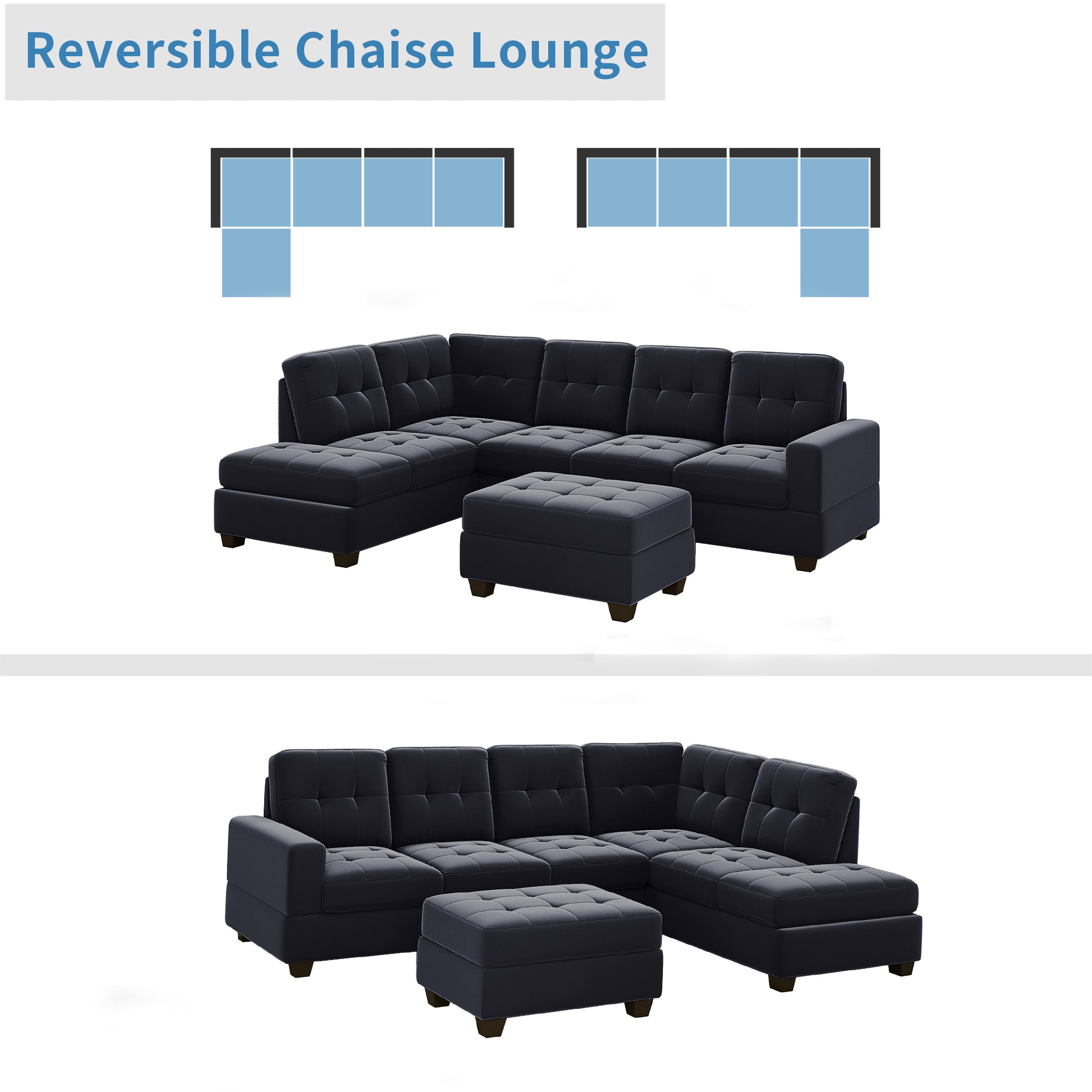 Orisfur. Modern Sectional Sofa With Reversible Chaise, L Shaped Couch Set With Storage Ottoman And Two Cup Holders For Living Room Black Foam Velvet