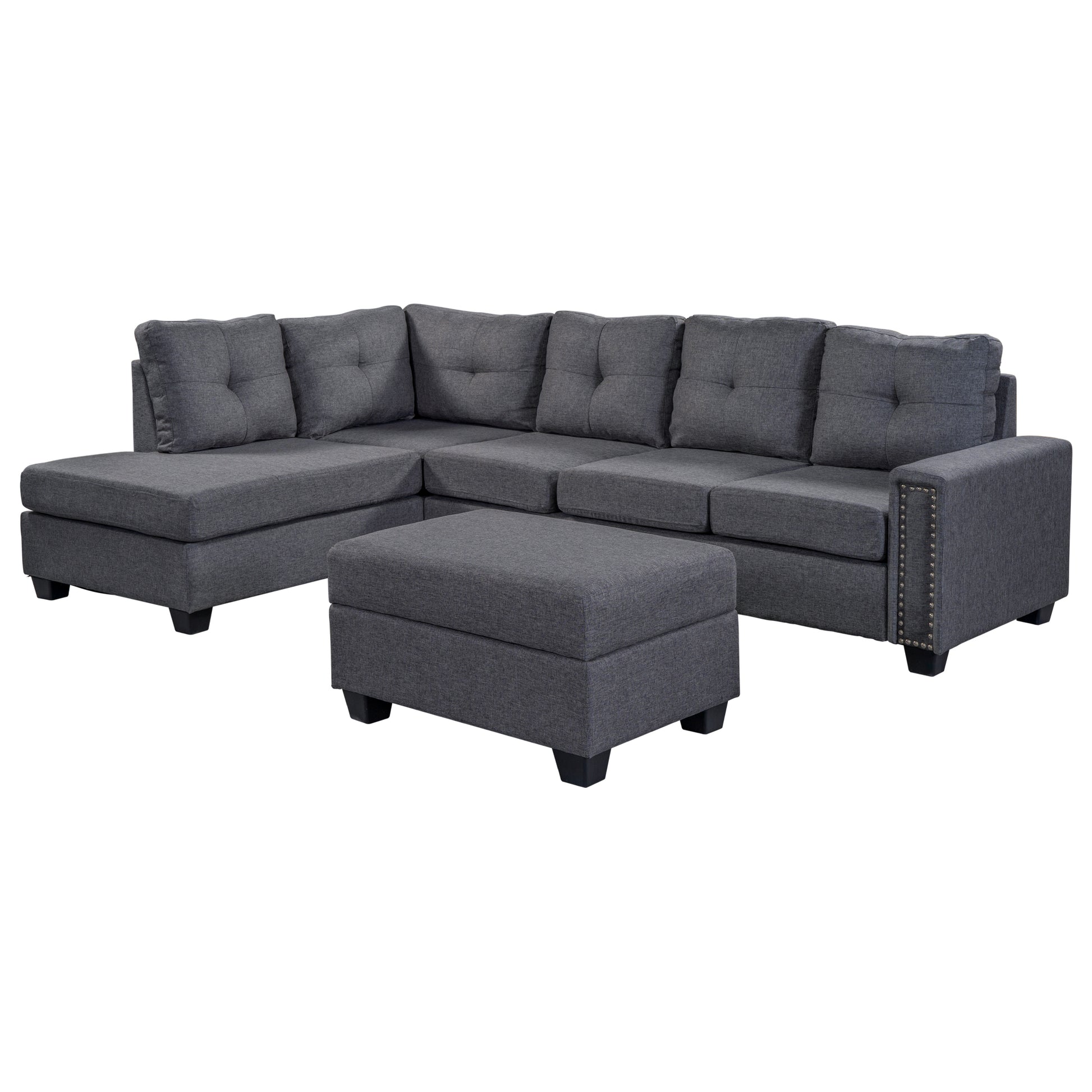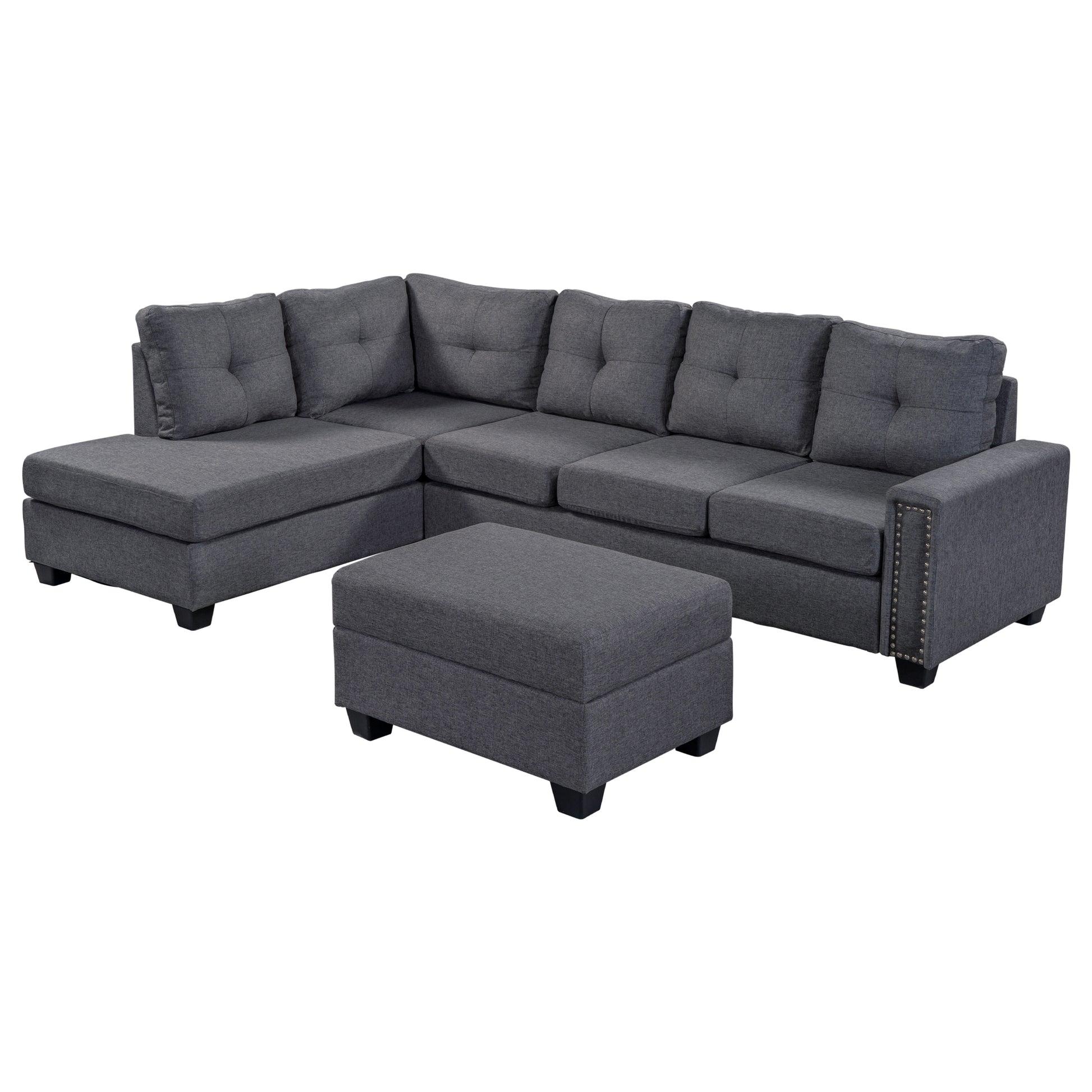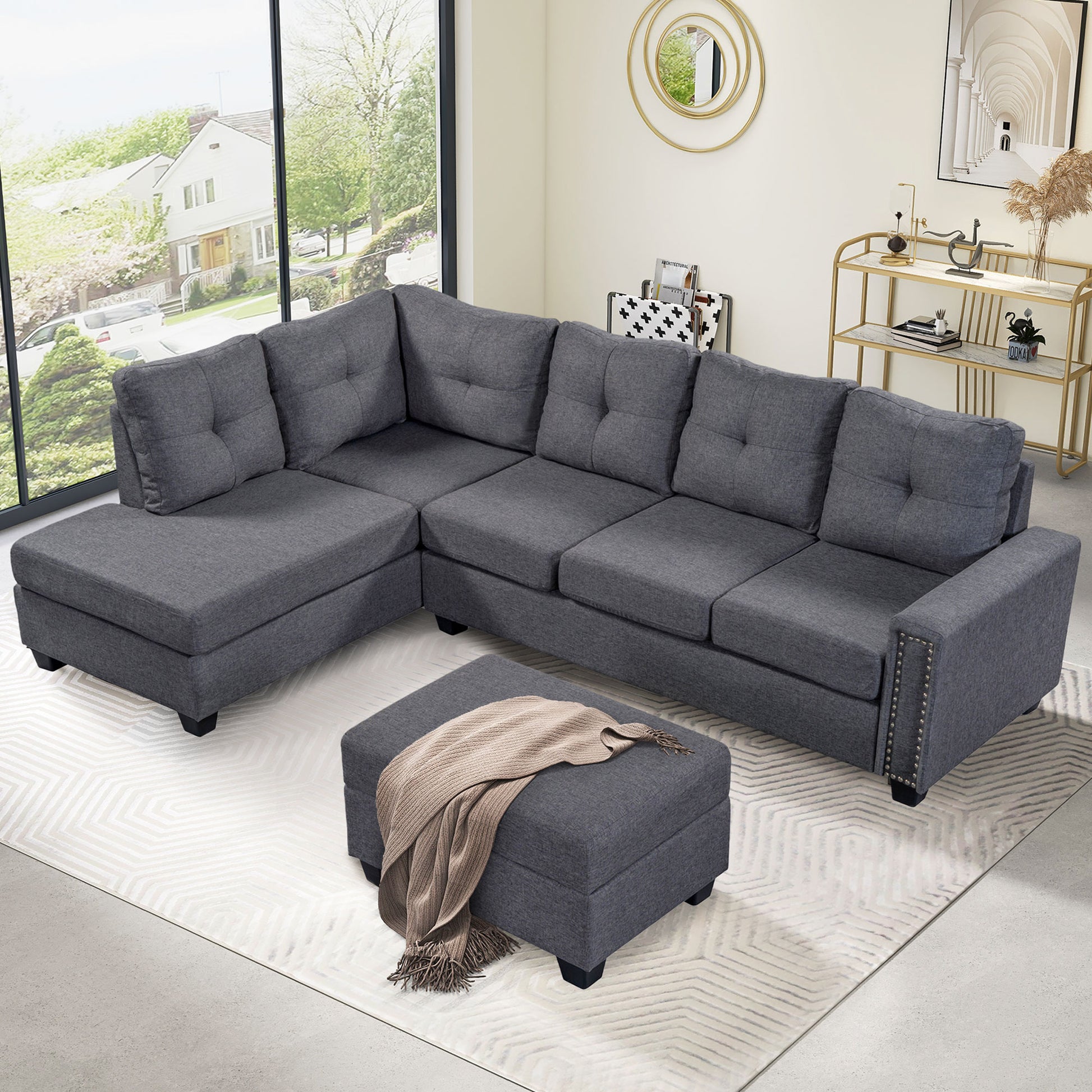 Orisfur. Reversible Sectional Sofa Space Saving With Storage Ottoman Rivet Ornament L Shape Couch For Large Space Dorm Apartment Gray Foam Linen 5 Seat