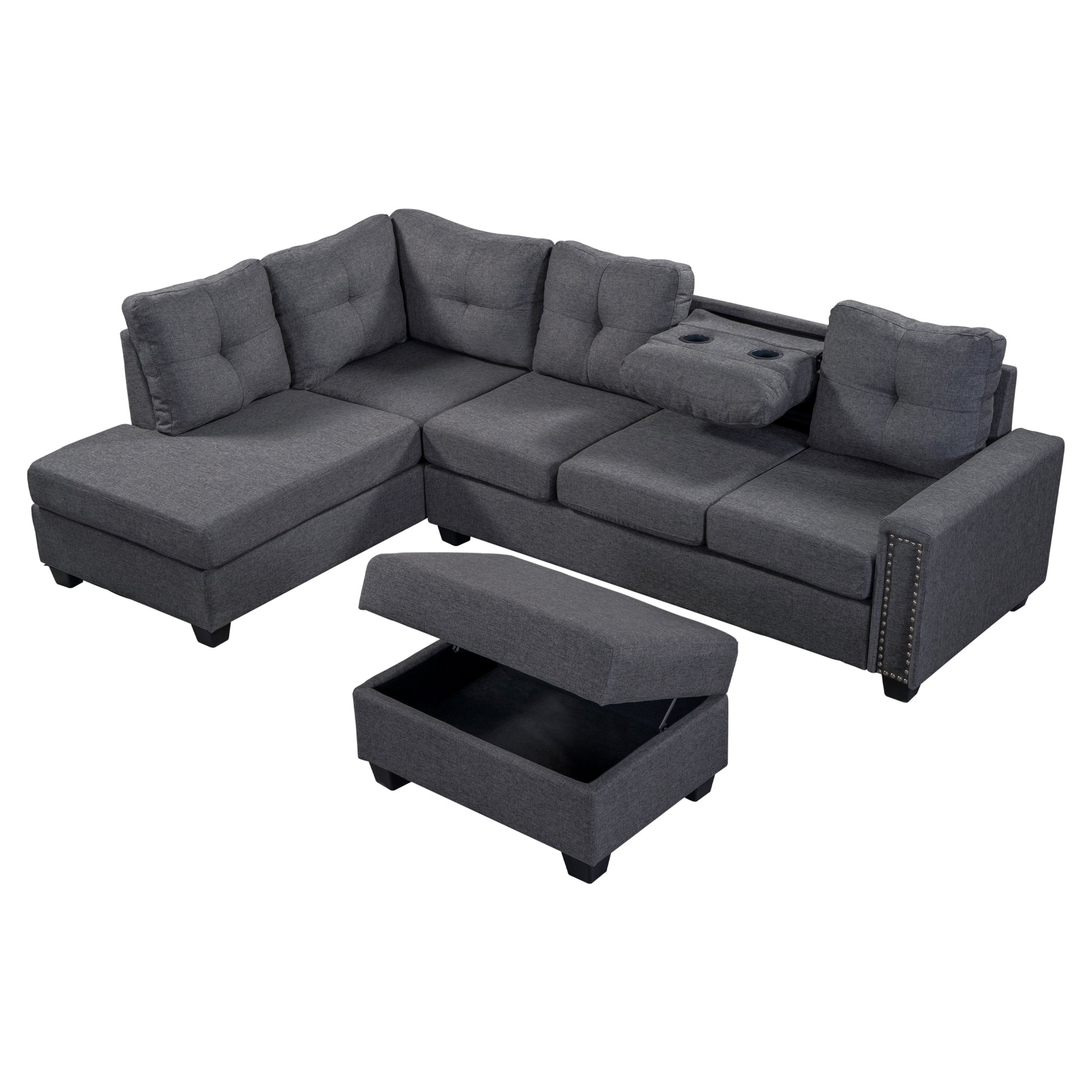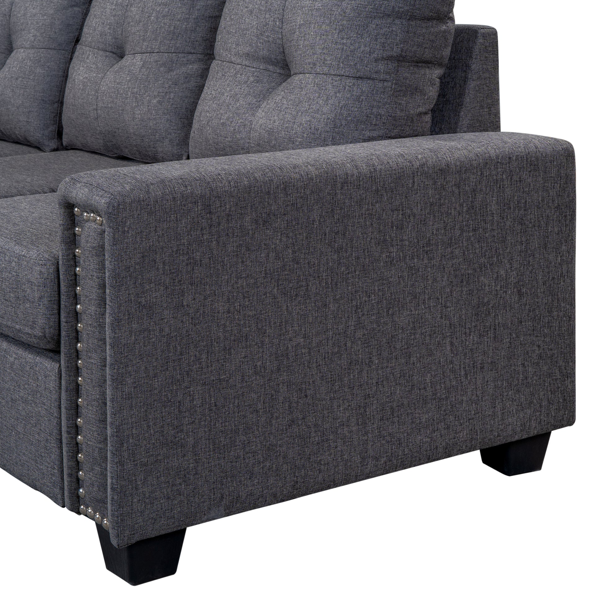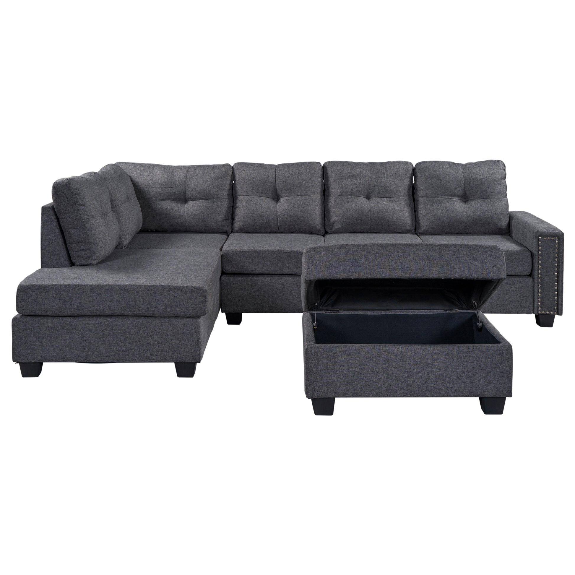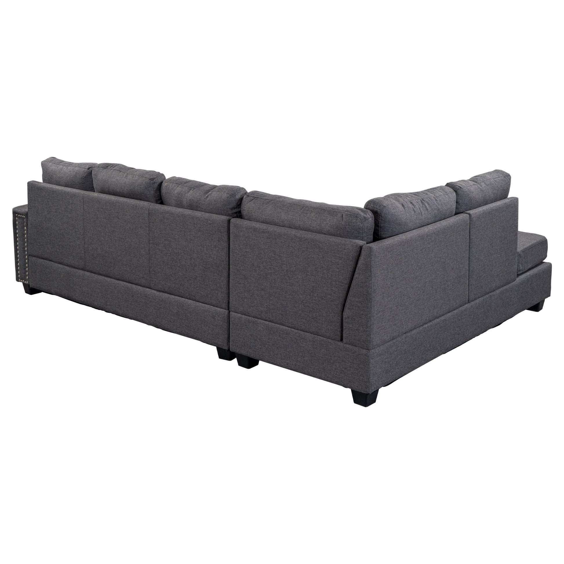 Orisfur. Reversible Sectional Sofa Space Saving With Storage Ottoman Rivet Ornament L Shape Couch For Large Space Dorm Apartment Gray Foam Linen 5 Seat