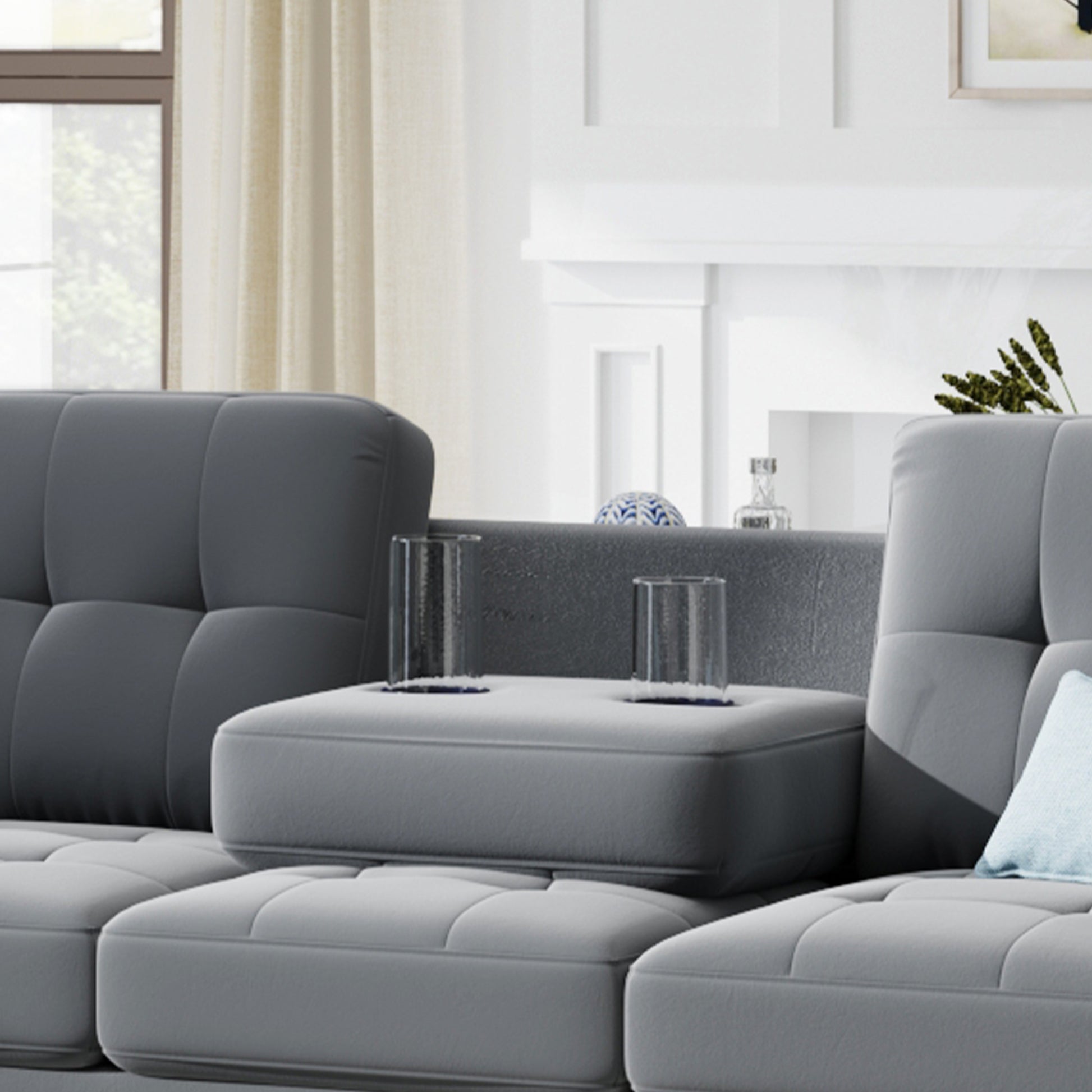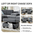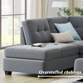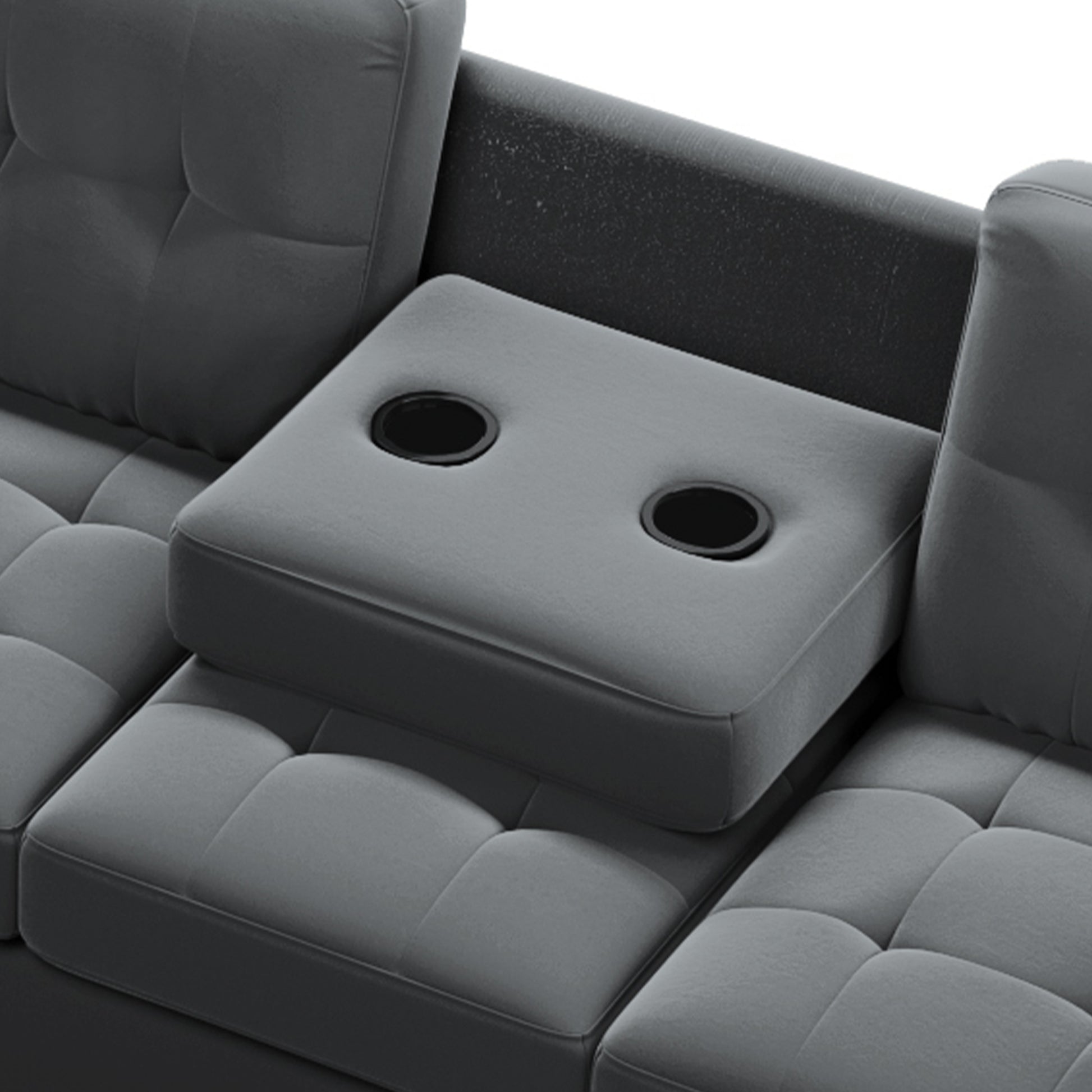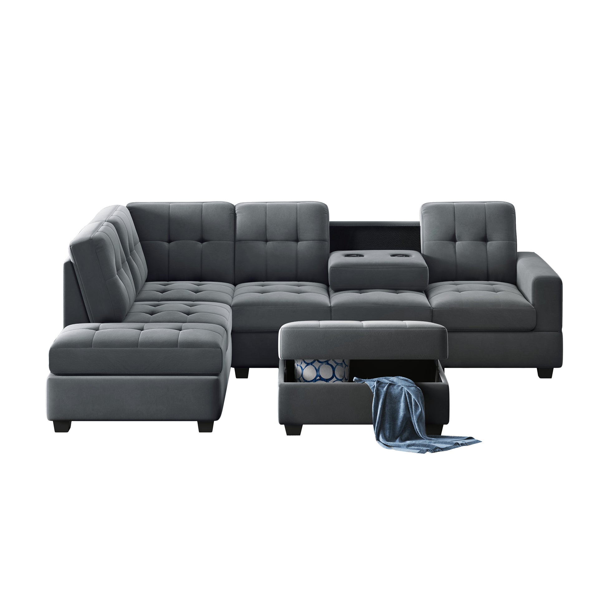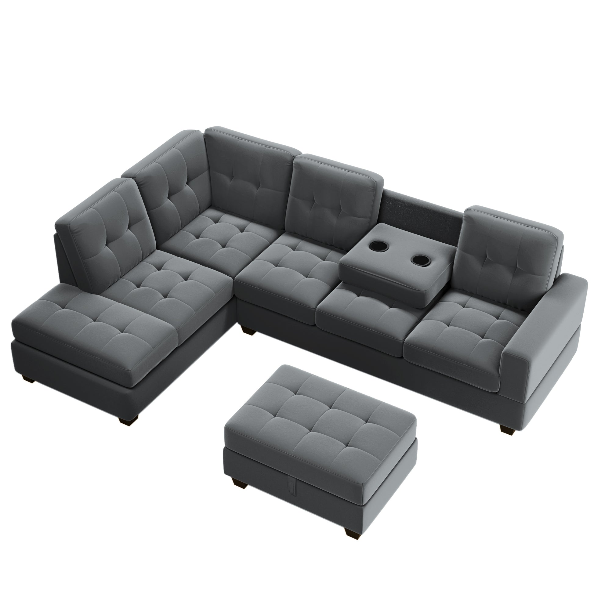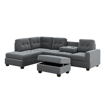 Orisfur. Sectional Sofa With Reversible Chaise Lounge, L Shaped Couch With Storage Ottoman And Cup Holders Gray Foam Velvet
