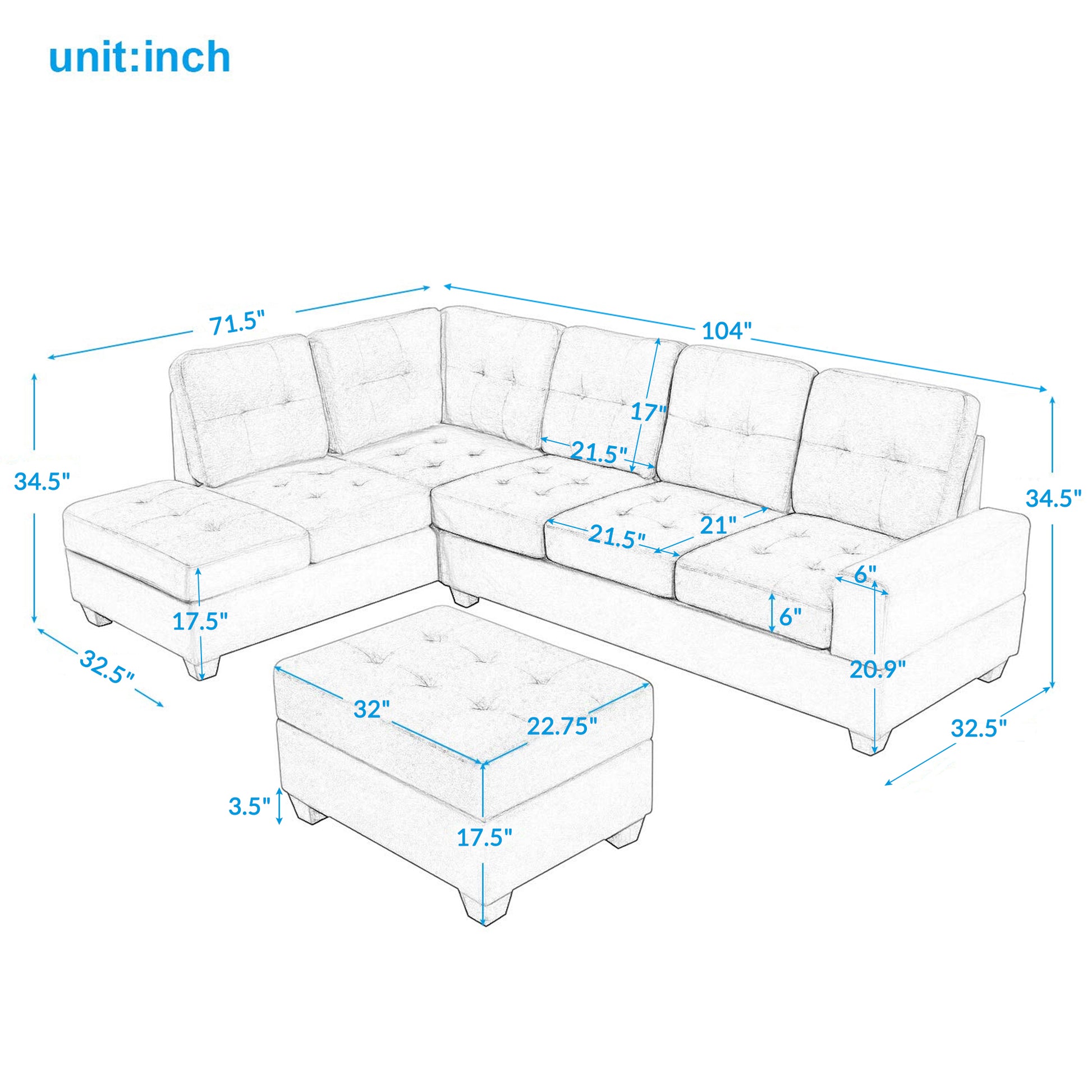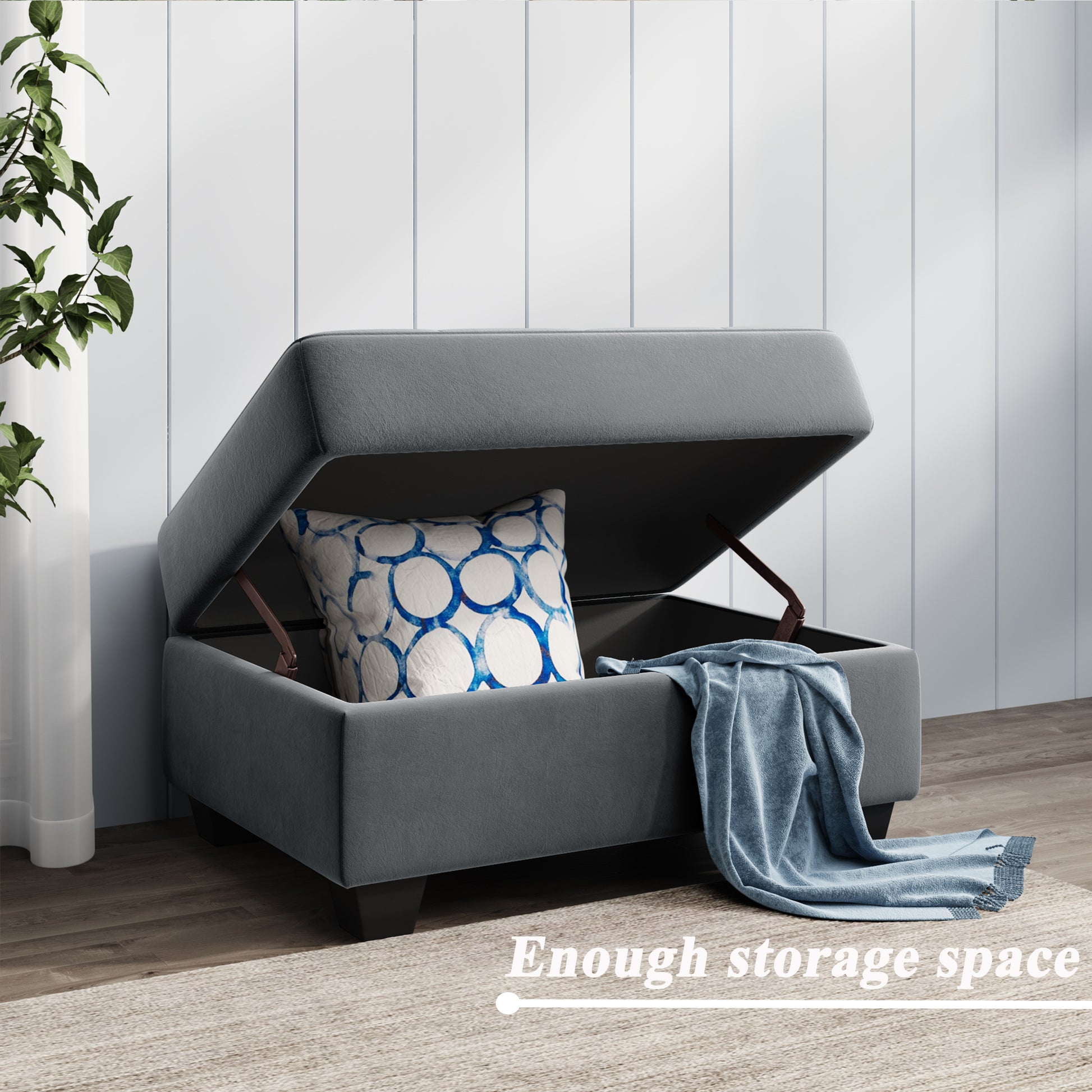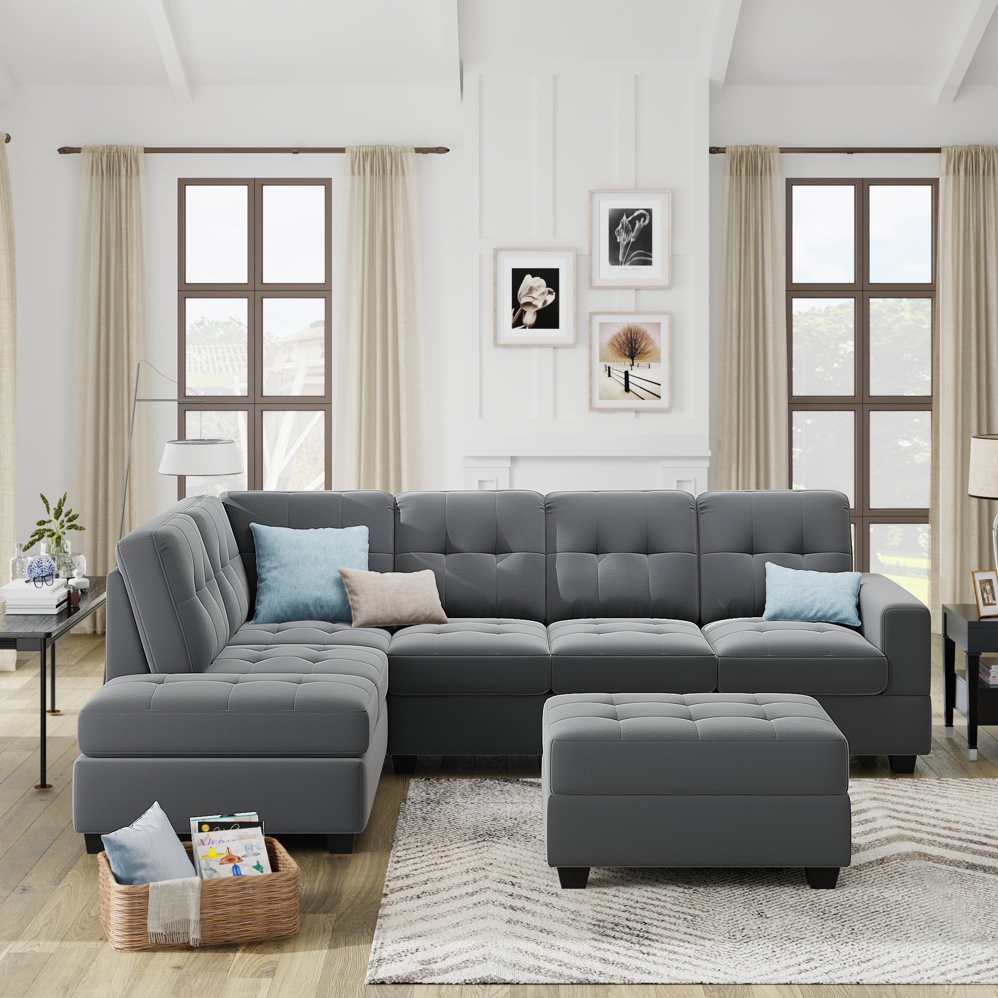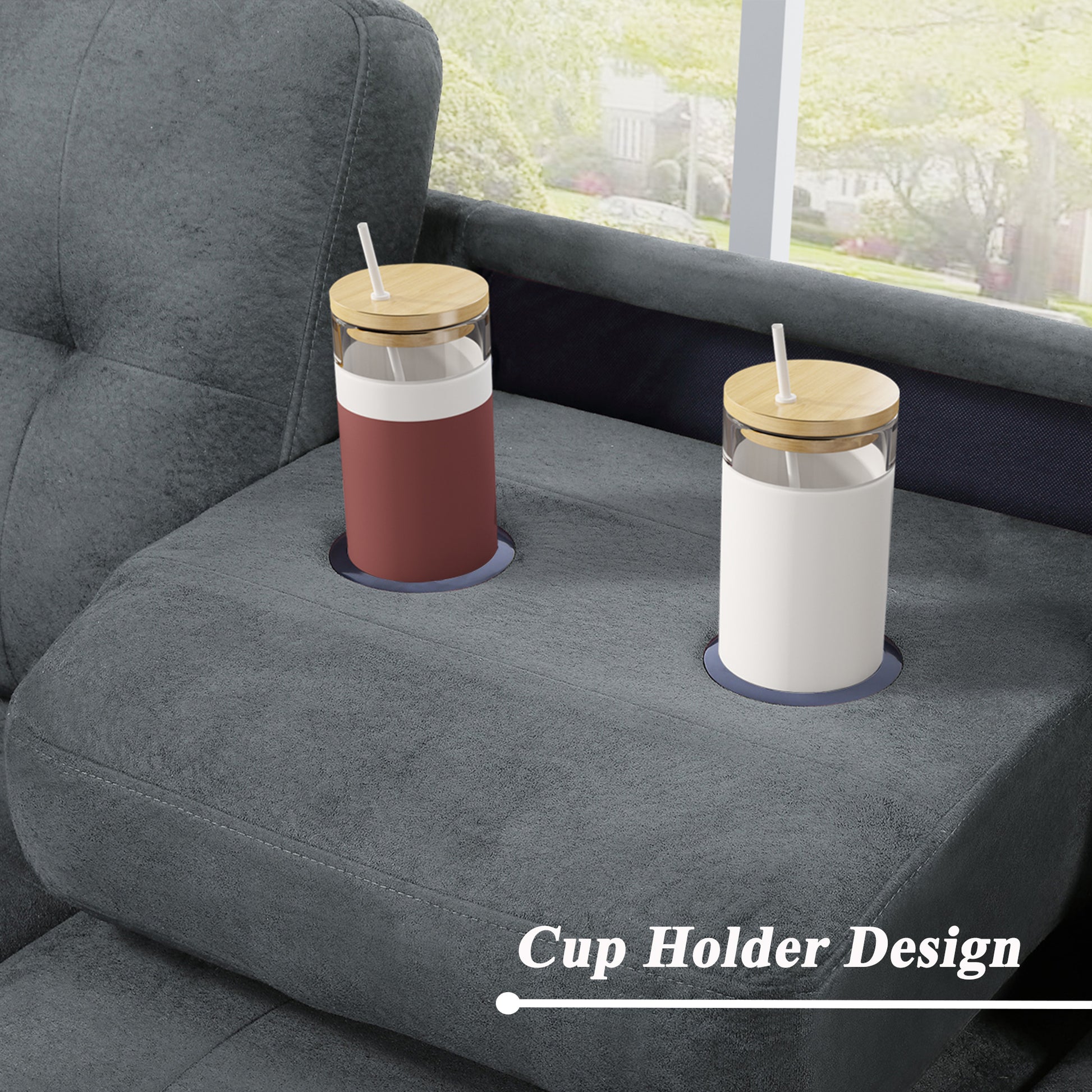 Orisfur. Sectional Sofa With Reversible Chaise Lounge, L Shaped Couch With Storage Ottoman And Cup Holders Gray Foam Velvet