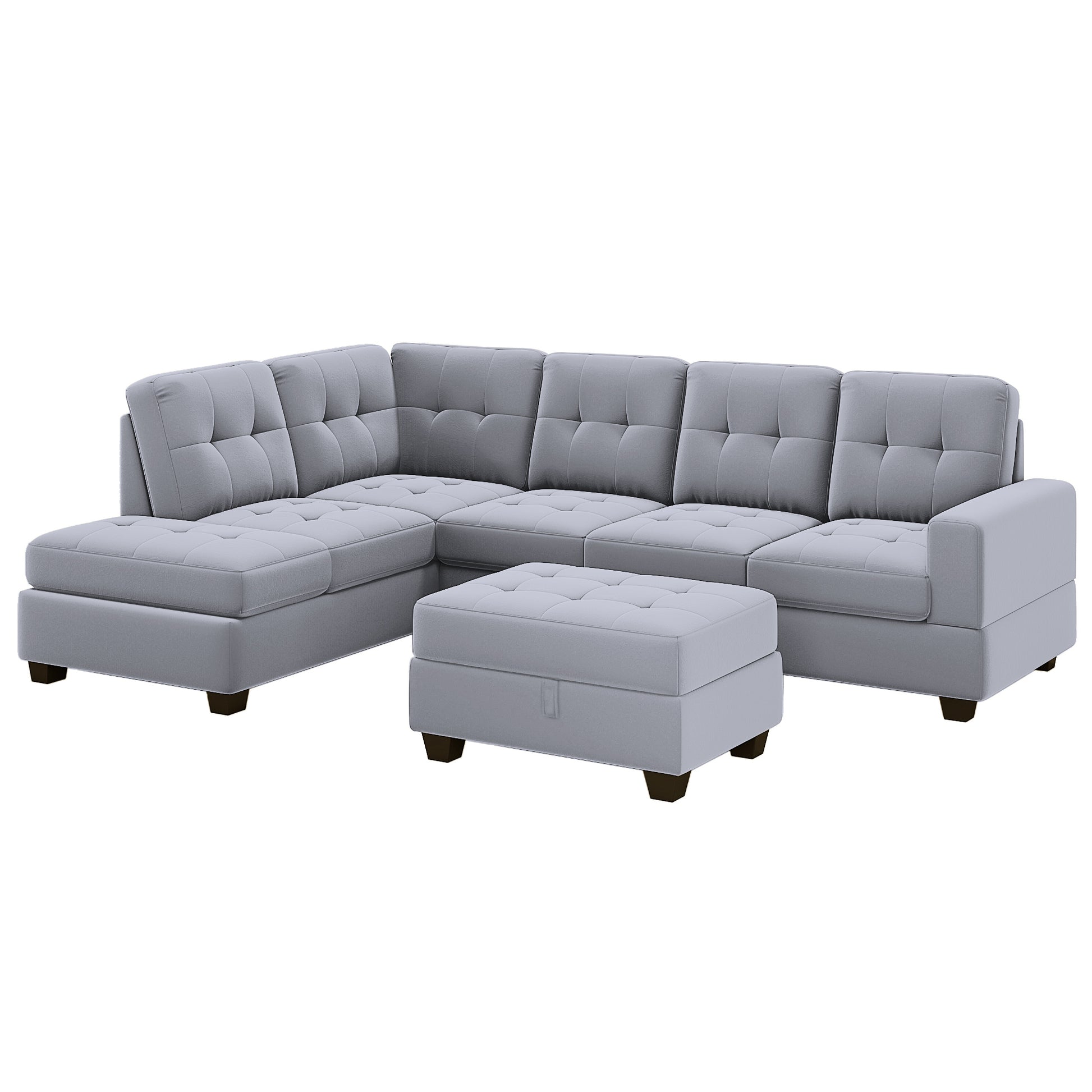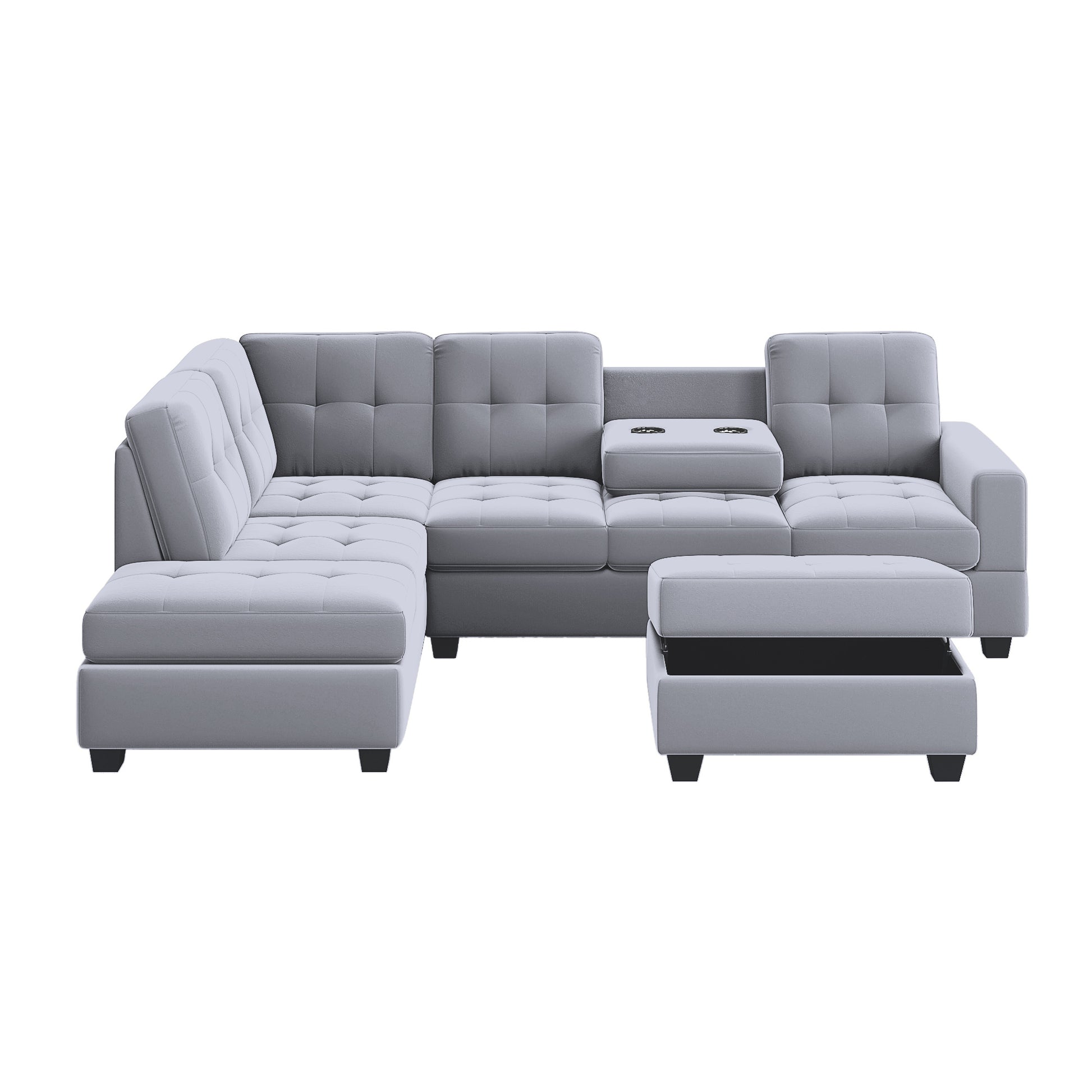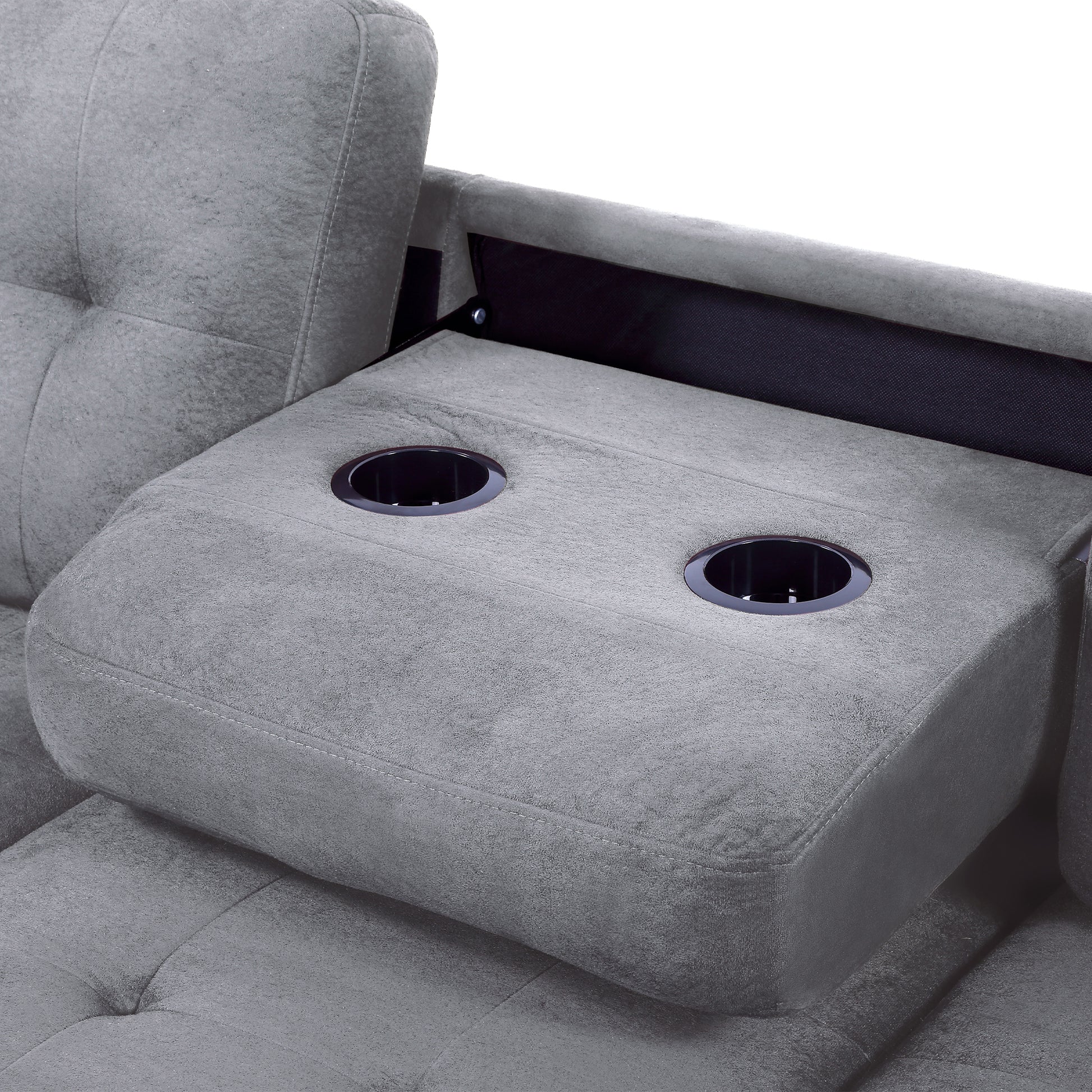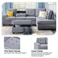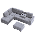 Orisfur. Sectional Sofa With Reversible Chaise Lounge, L Shaped Couch With Storage Ottoman And Cup Holders Antique Gray Foam Velvet